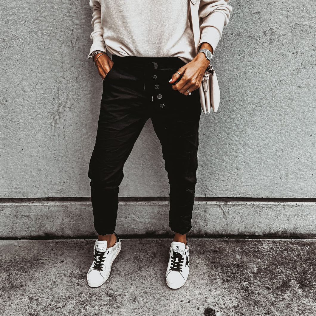 Sizing info: These black jean joggers are coming up pretty much on size. If anything they come up big so size down. I am a size 12 and like to wear the MEDIUM. For a tighter, more skinny look fit, go down a size.