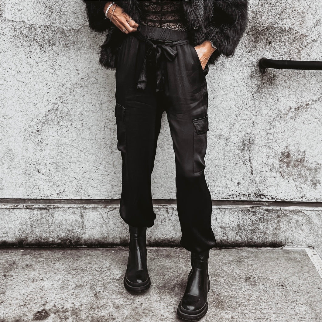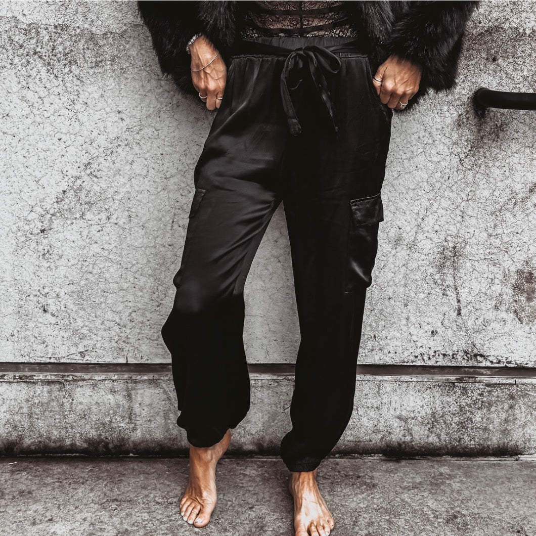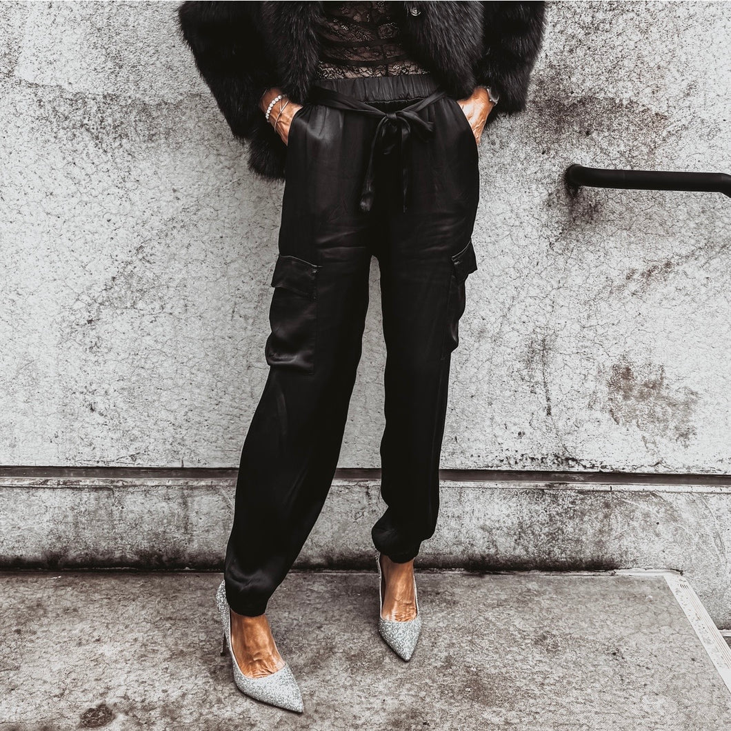 BLACK Satin cargo joggers *NEW*