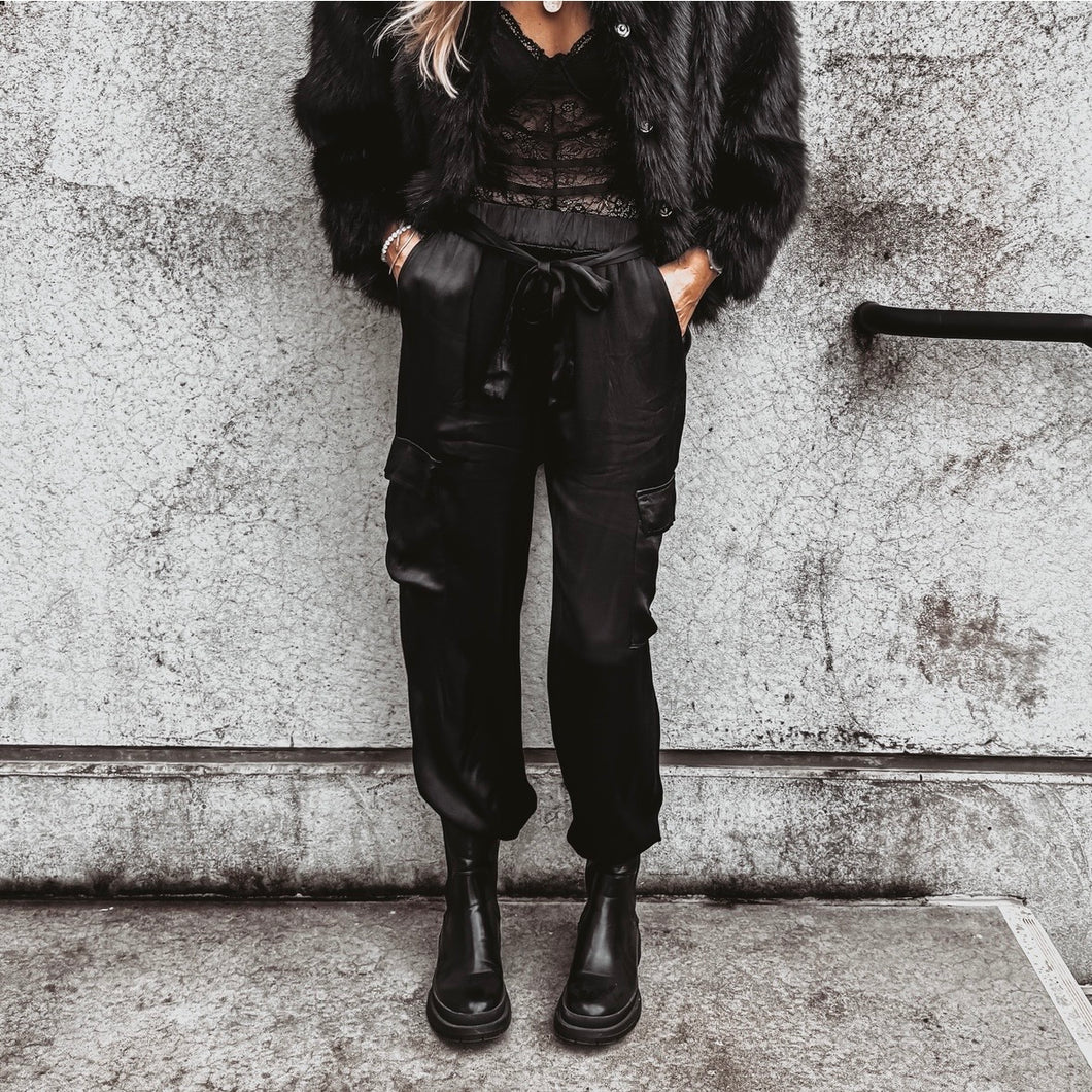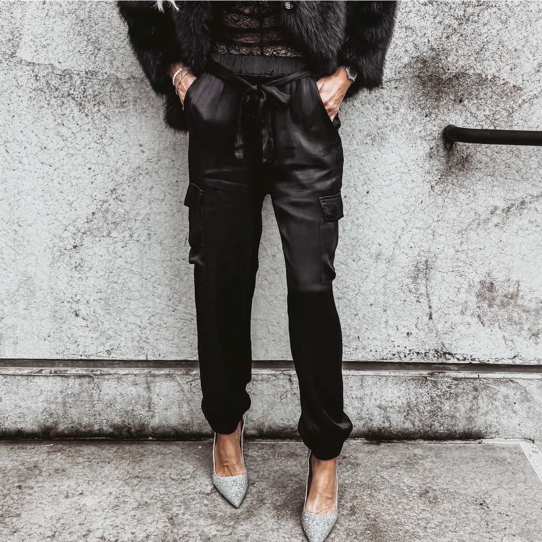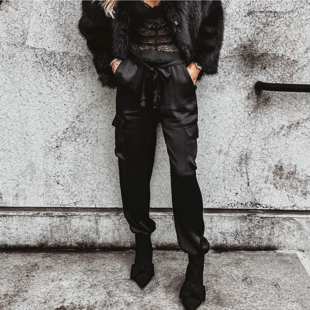 BLACK Satin cargo joggers *NEW*