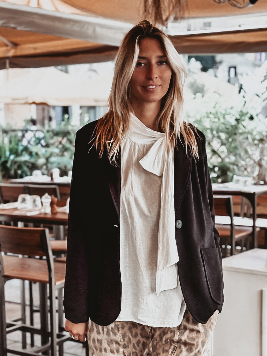 A super stylish cream blouse that will look great worn with my ultimate joggers or jeans for a smarter day or evening look. Hangs beautifully. Wear tucked in or out. Perfect for nights out on holiday.