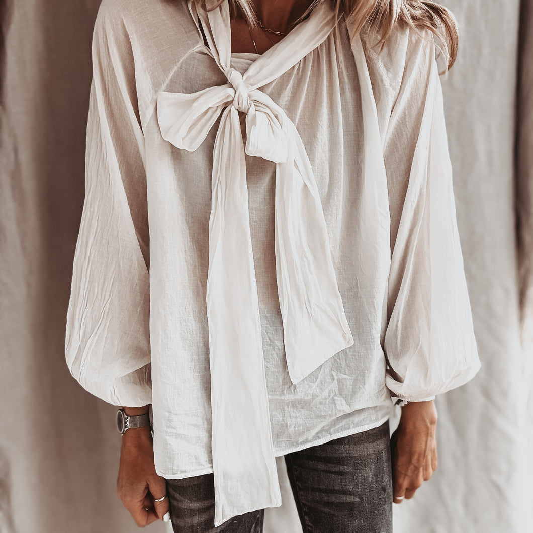 Claudia VINTAGE WHITE floaty bow blouse *NEW*