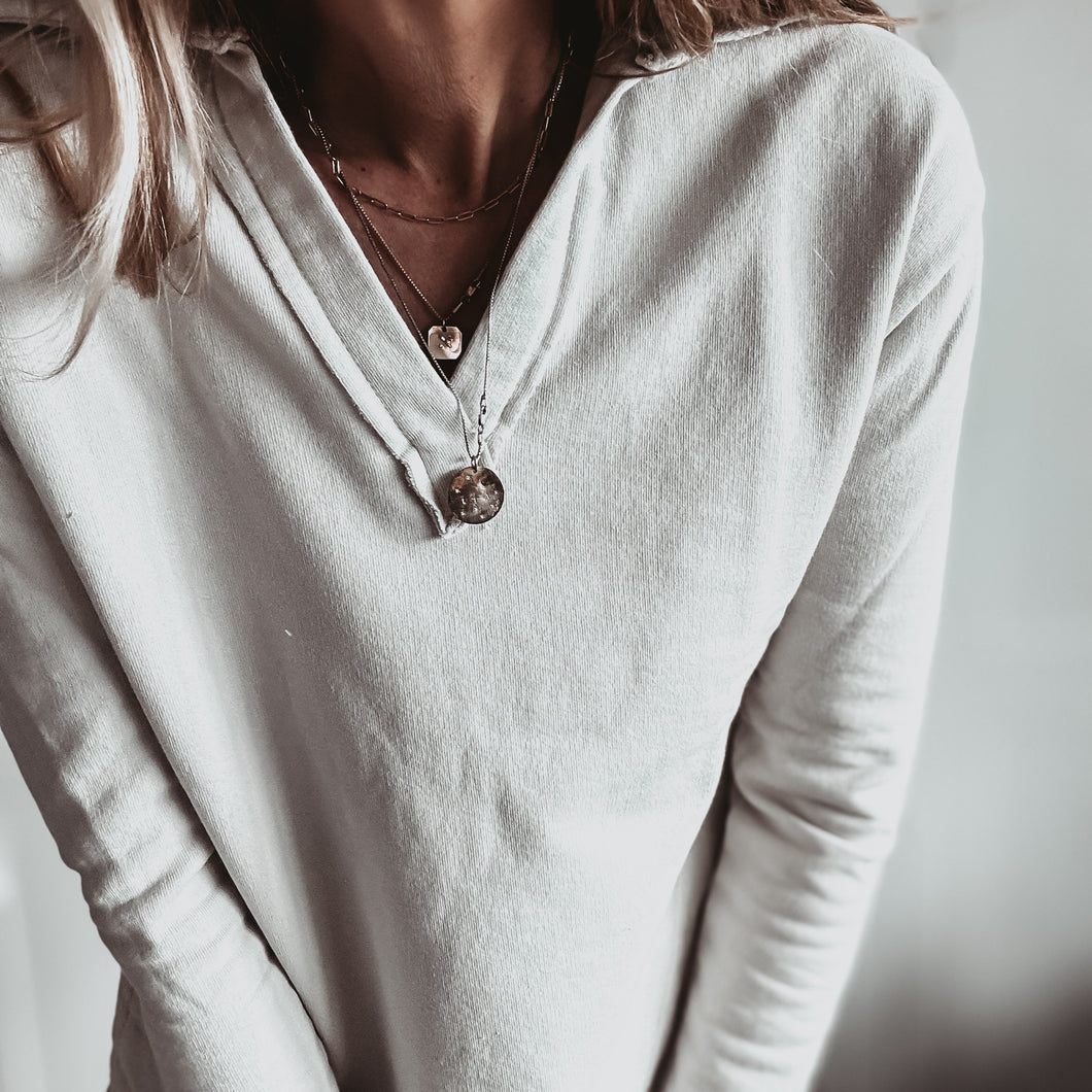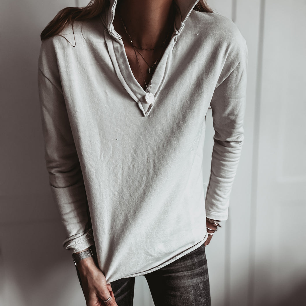 BEIGE Whisper v neck collar sweatshirt *NEW*