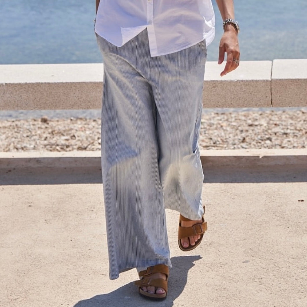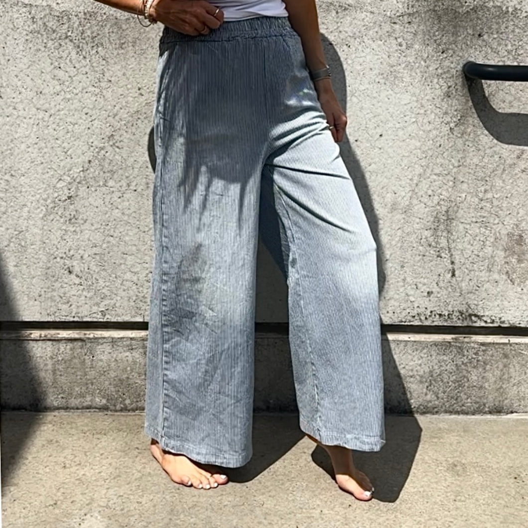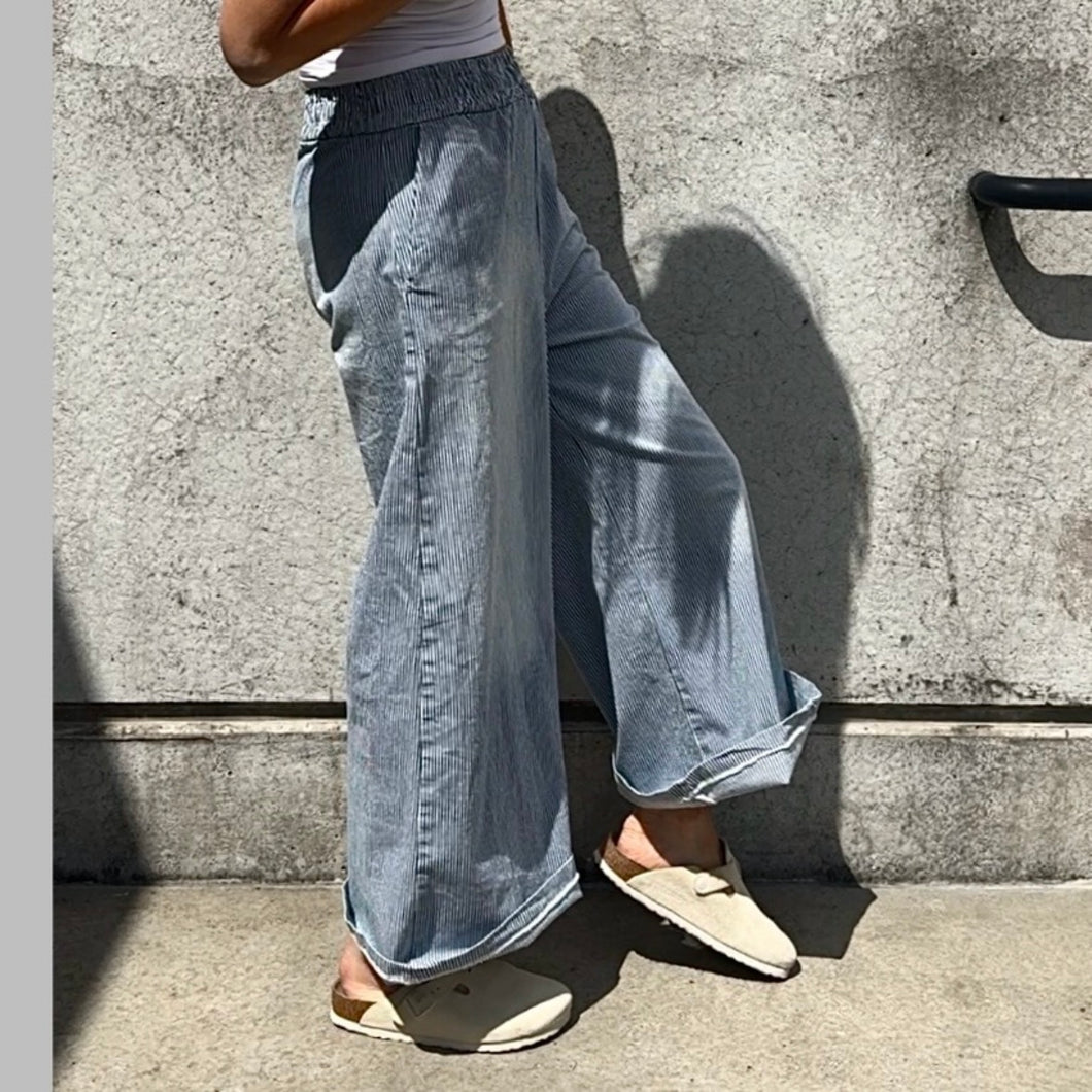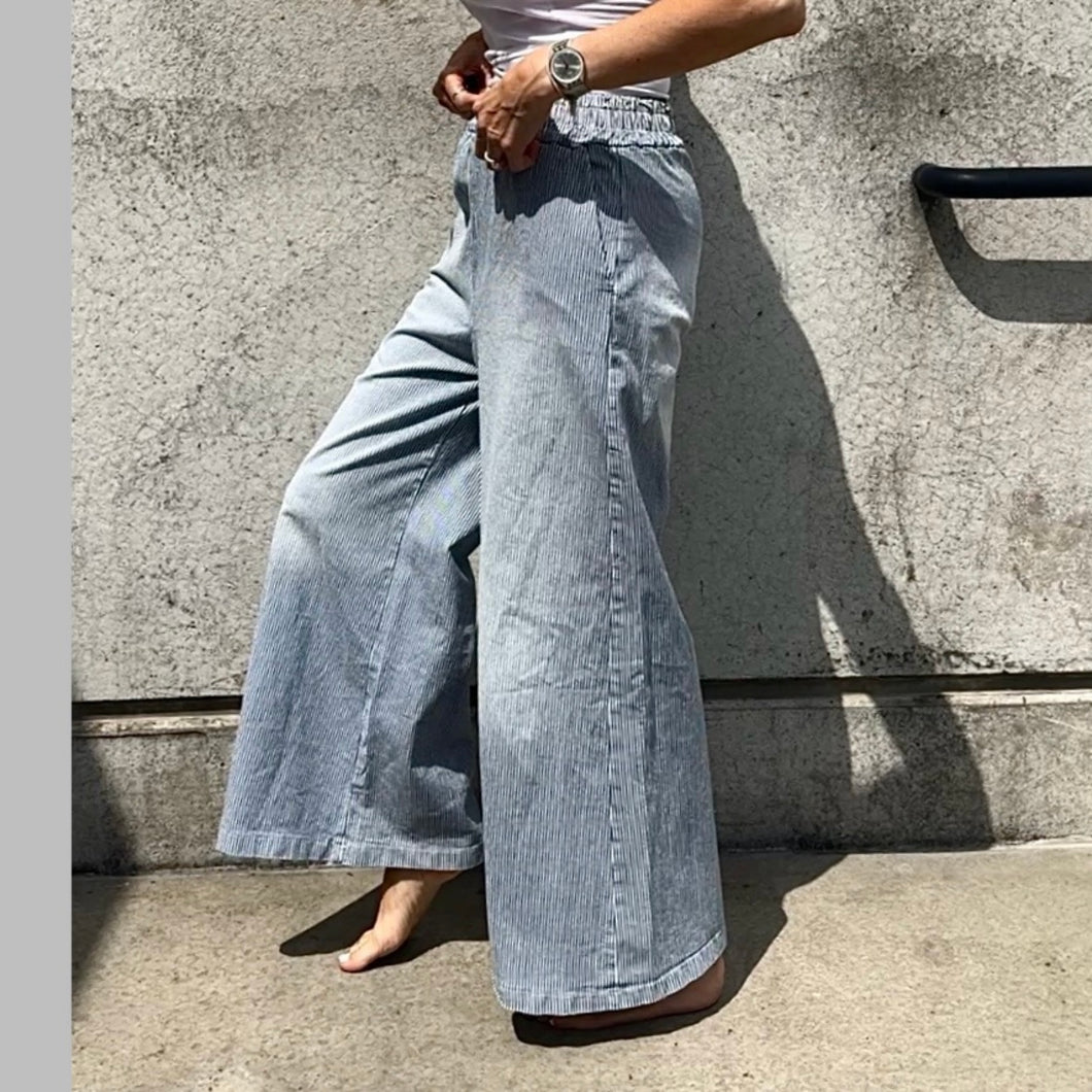 Absolutely love the shape and style of these jeans. Super wide leg, stripey and we are obsessed! Wear rolled up or down.