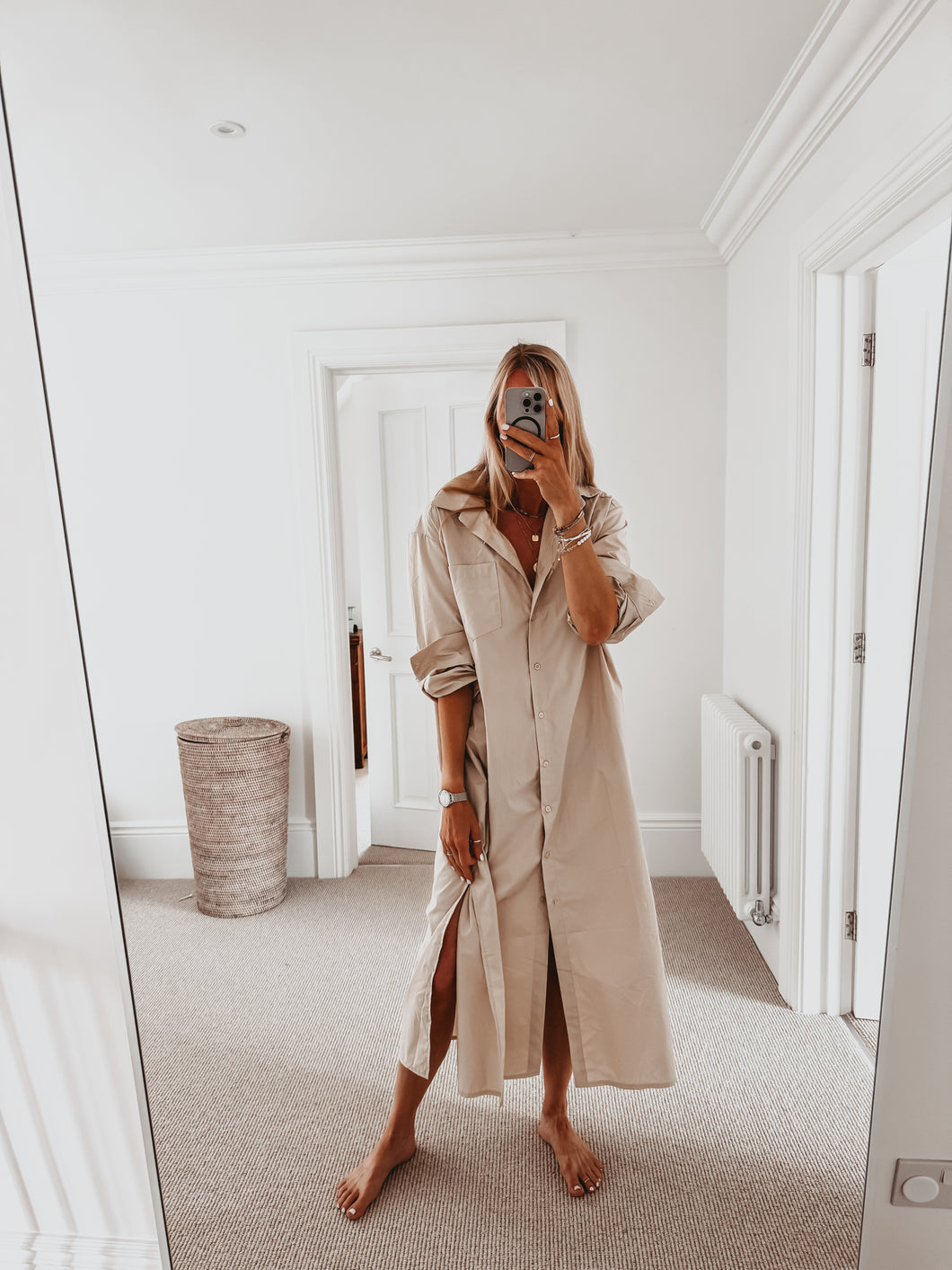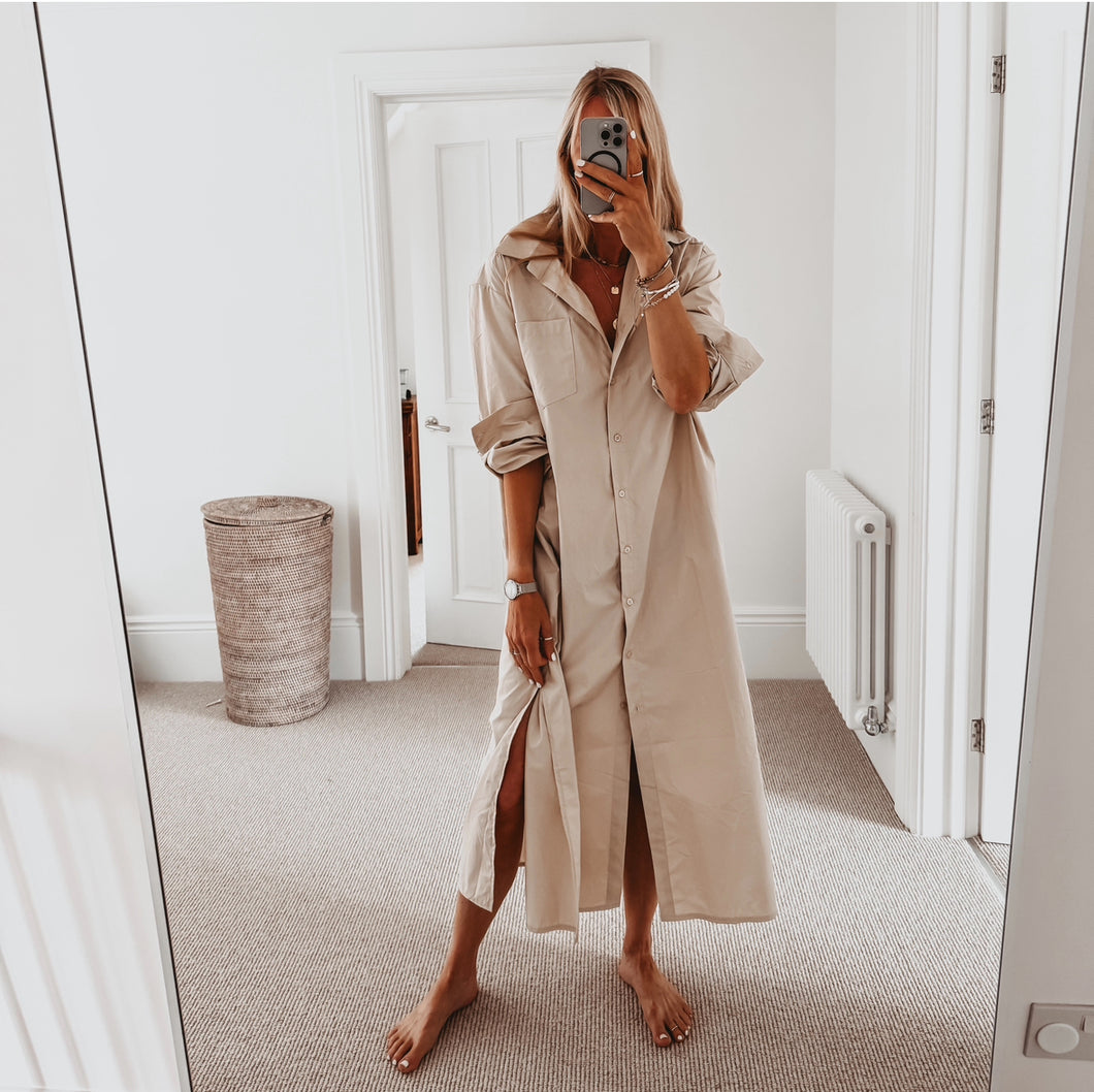 A super stylish and on trend trench shirt dress. Made in Italy.
