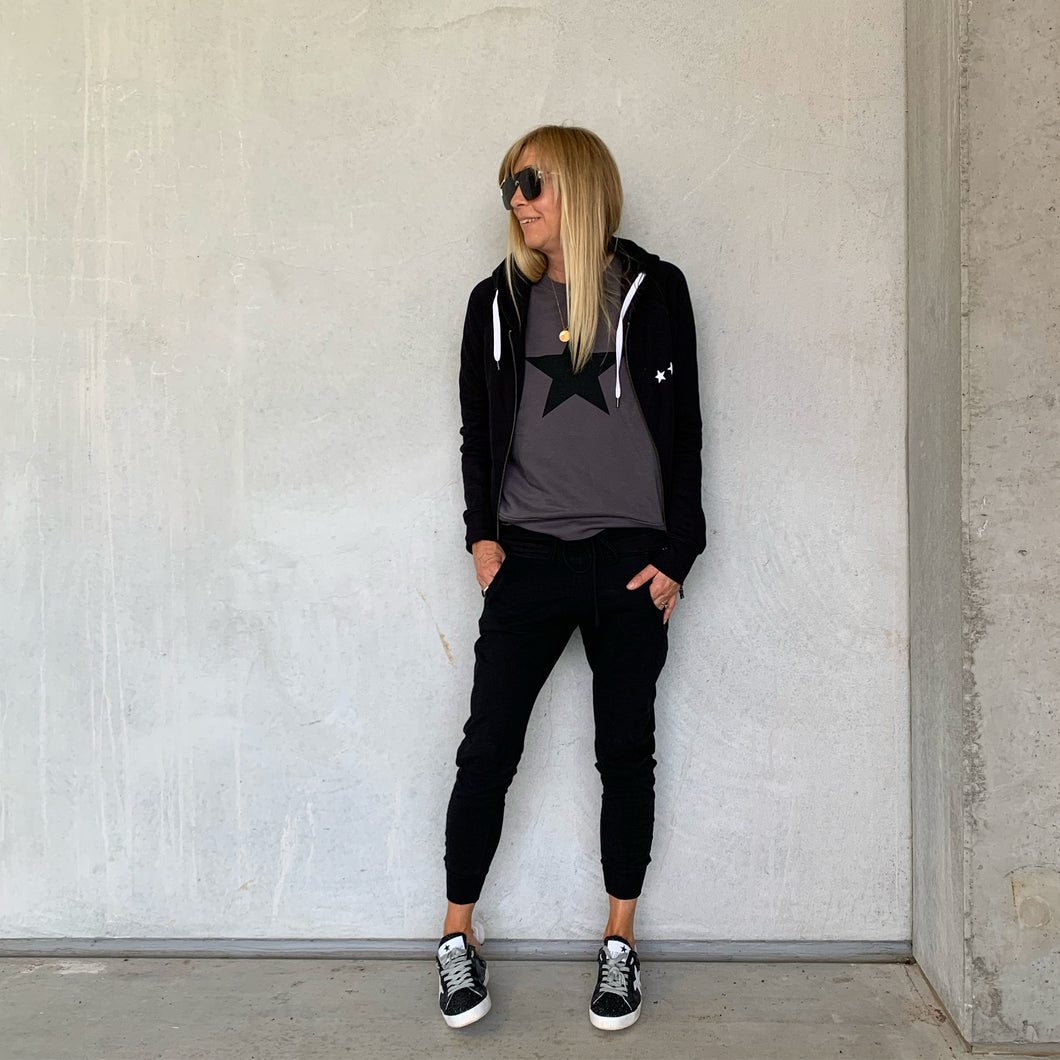 This sweatshirt is super high quality! 85% organic cotton & 15% recycled polyester. A different fit to my other sweatshirt, not as long in the body. More of a traditional sweatshirt fit. It’s FAIRWEAR certified.