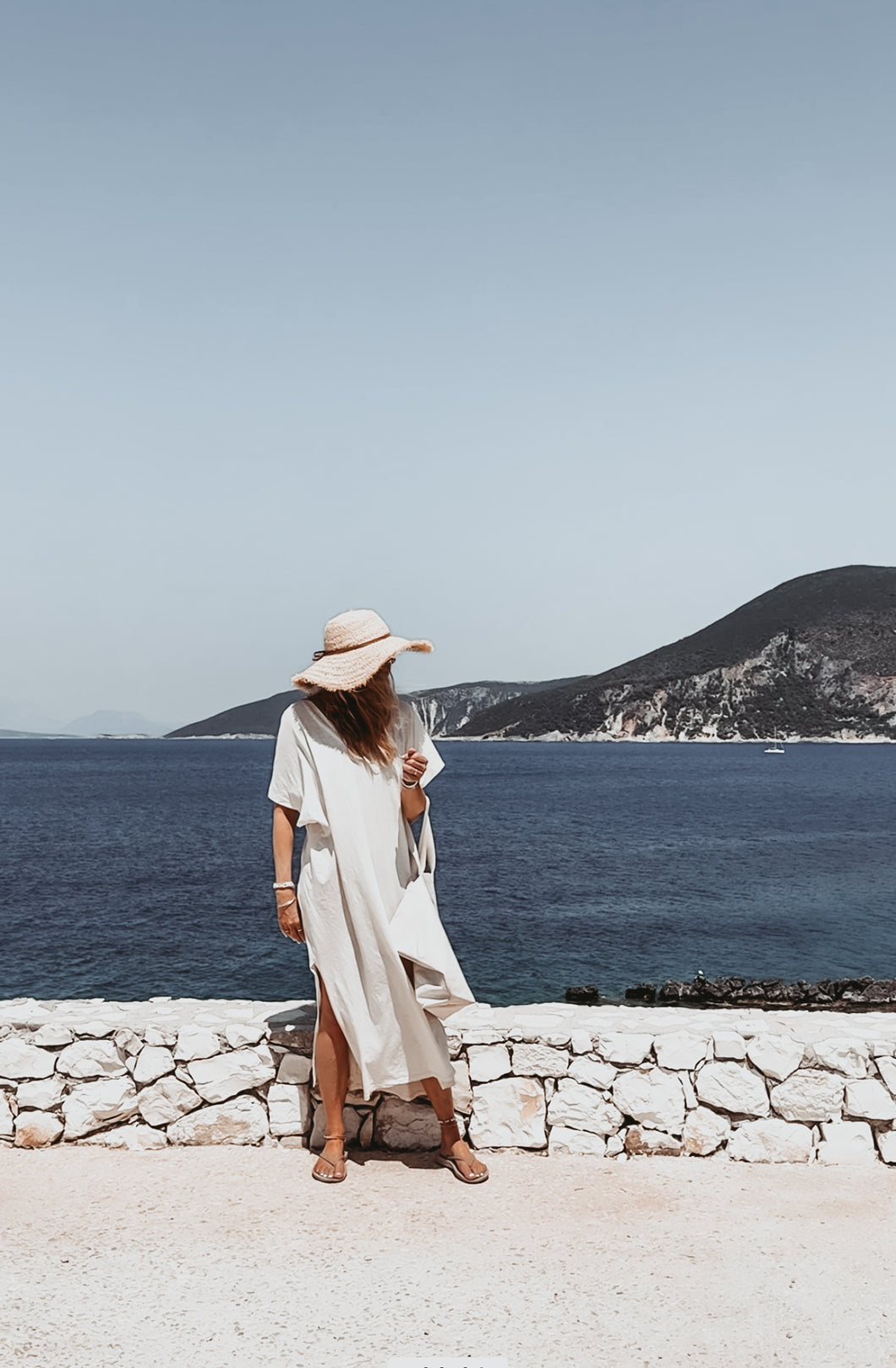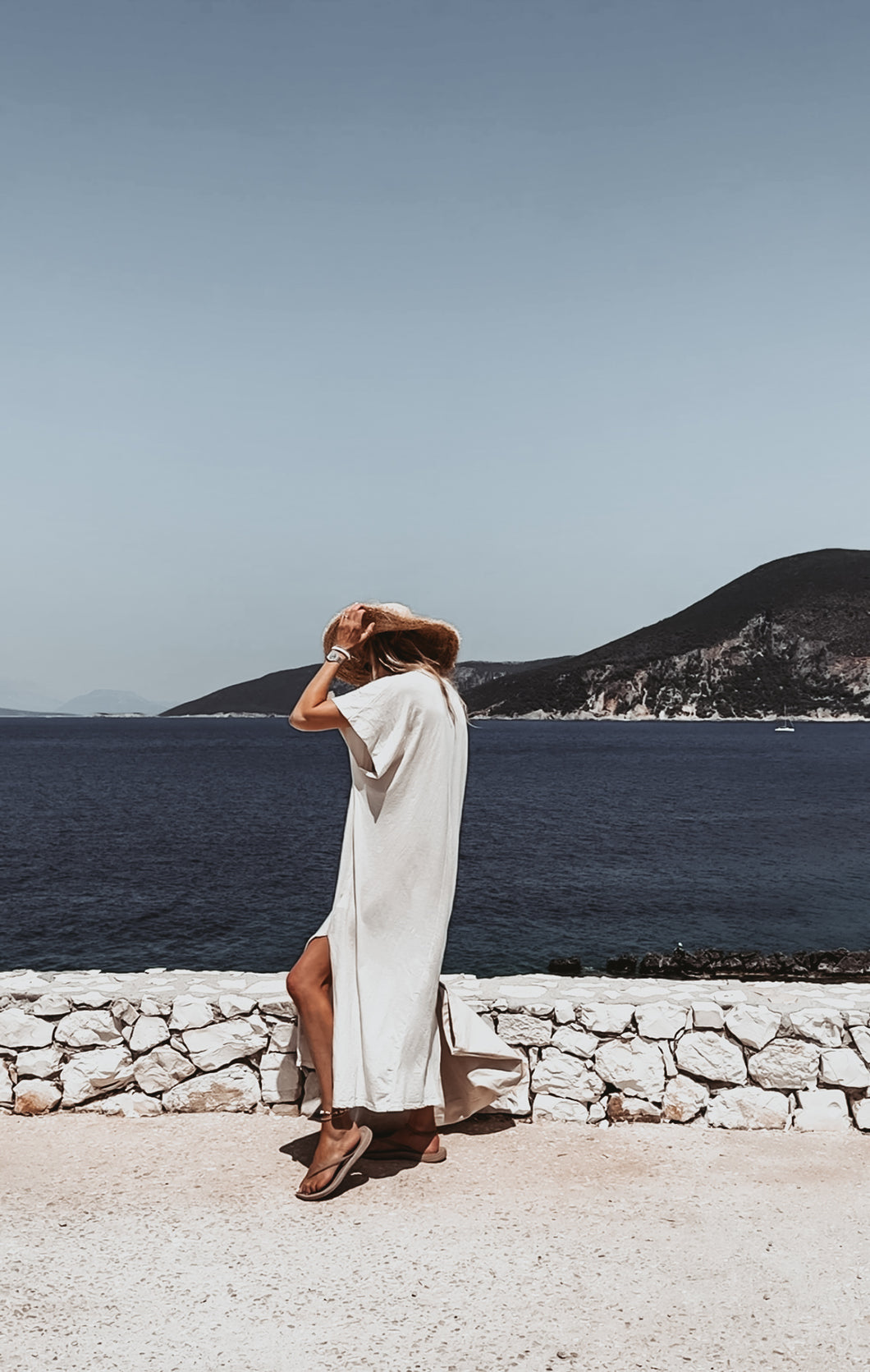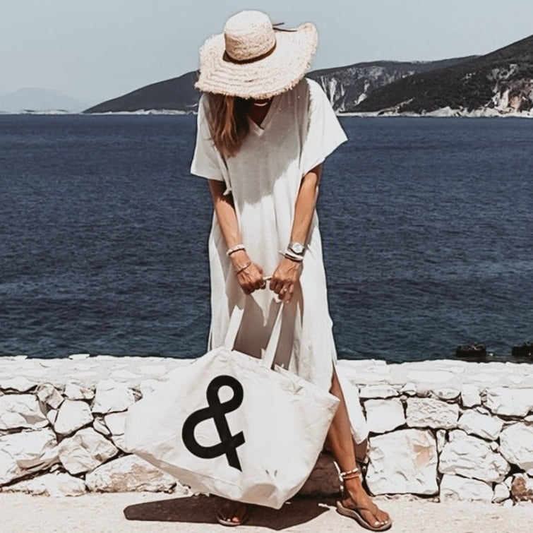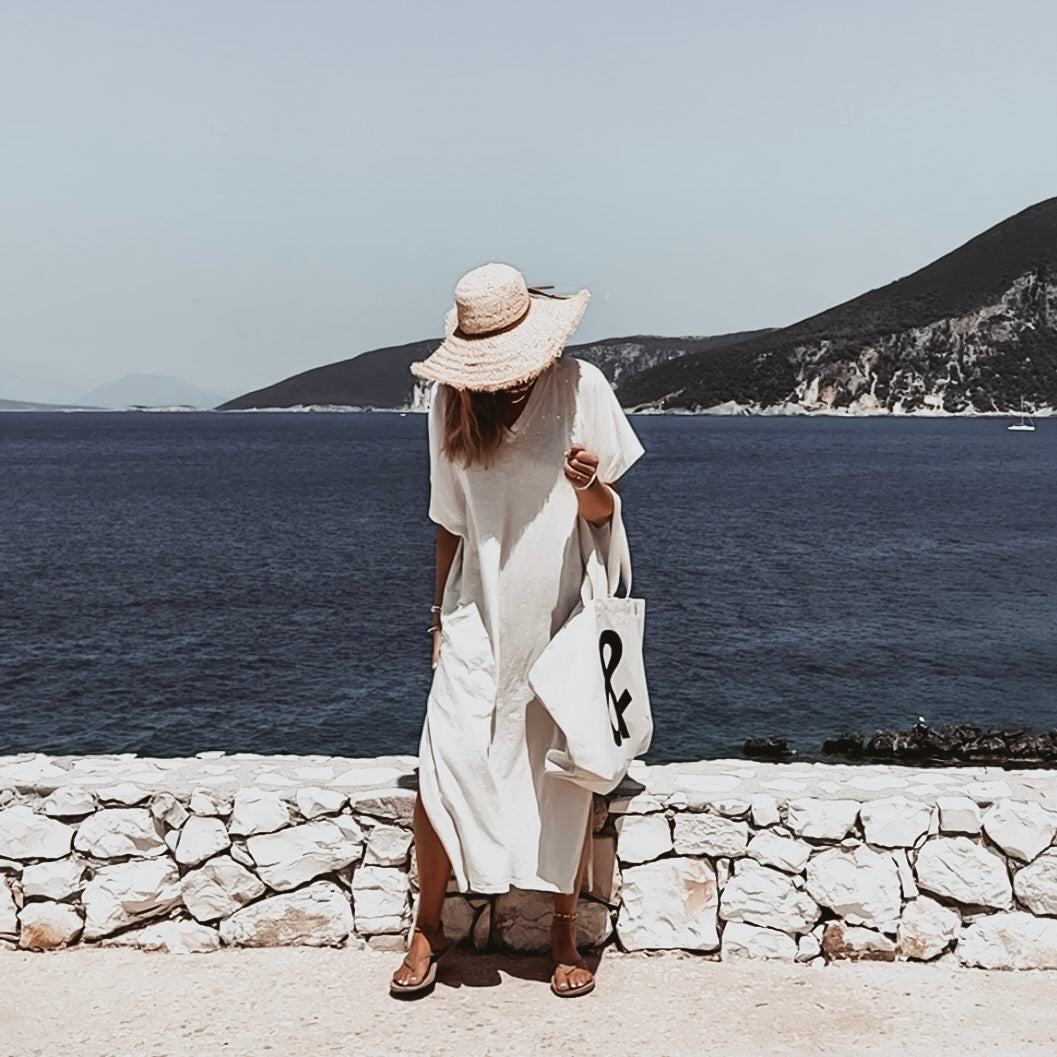A super stylish dress, perfect for hot days and holidays! A great cover up for the beach or poolside. Can also be dressed up for the evening with sandals.