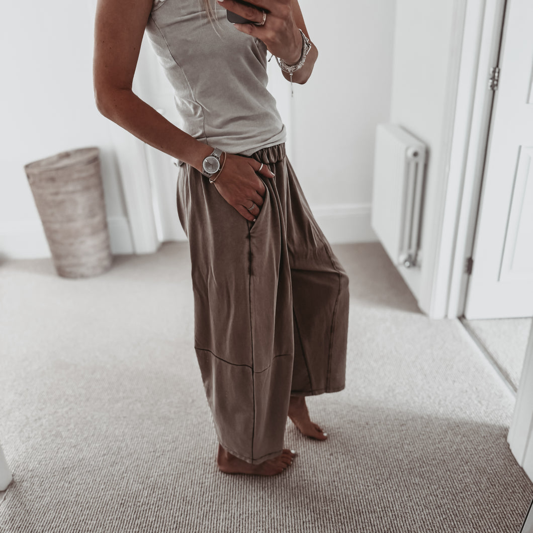 Love these gorgeous parachute pants! A gorgeous light weight fabric, perfect for holidays and travelling. LOVE the shape of them, slightly barrel legs slightly tapered above the ankles. Wear with a IBIZA TOWN tank top.