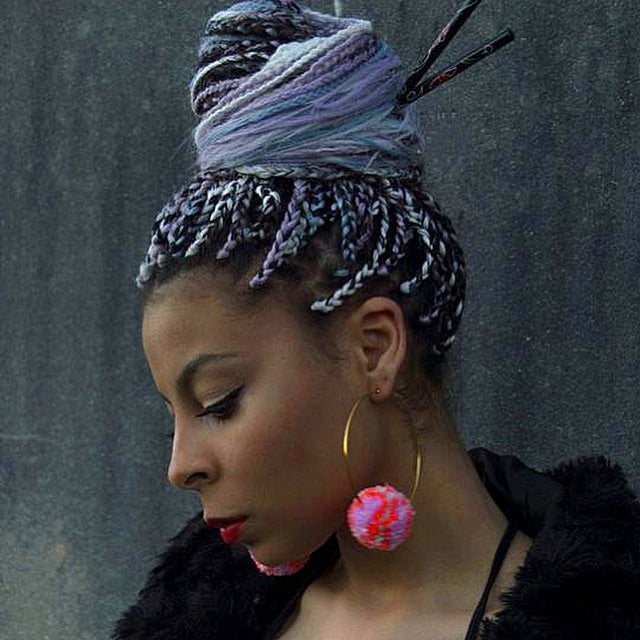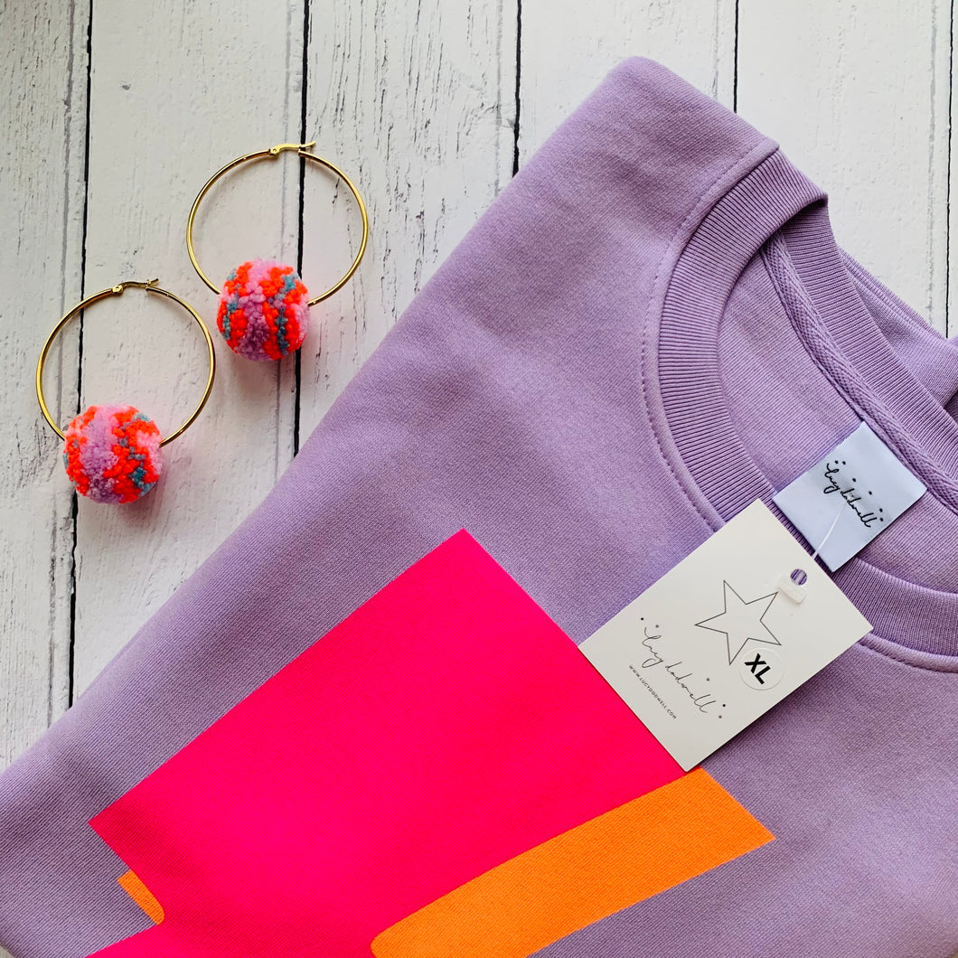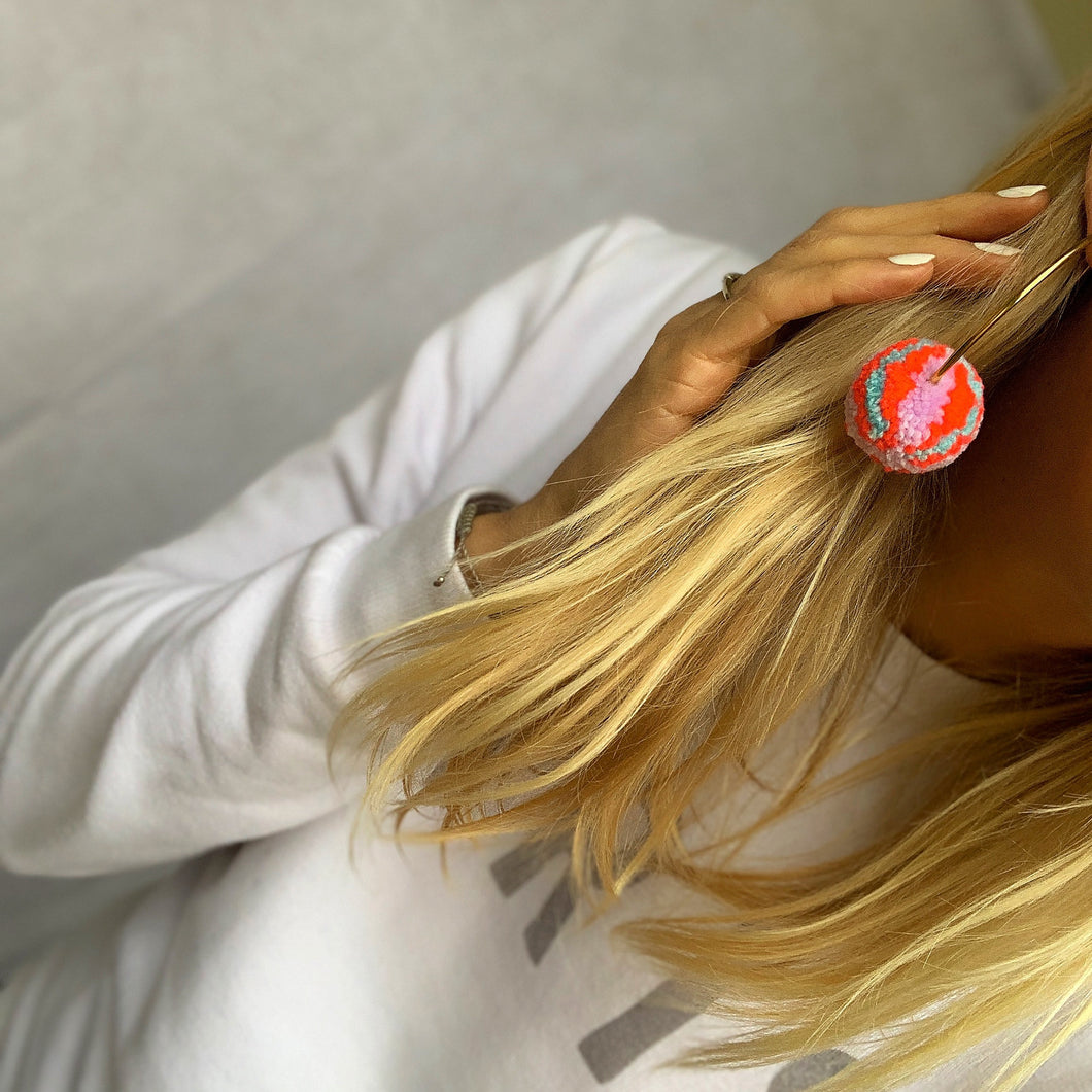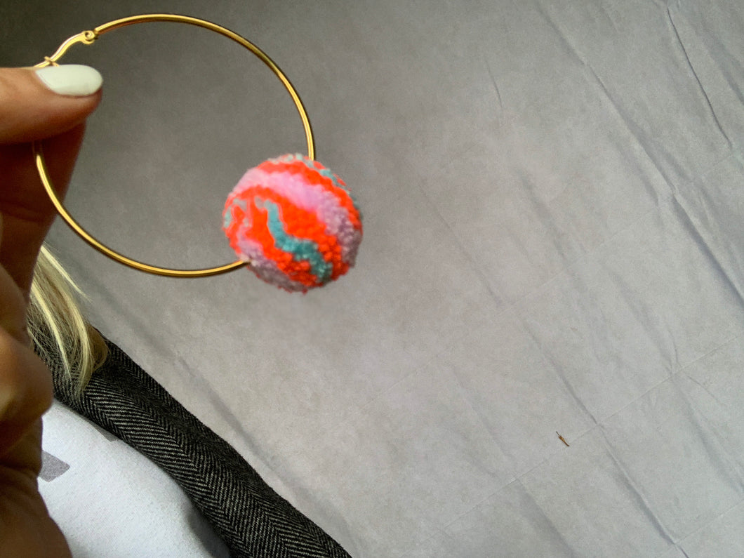 Large neon Pom Pom hoop earrings