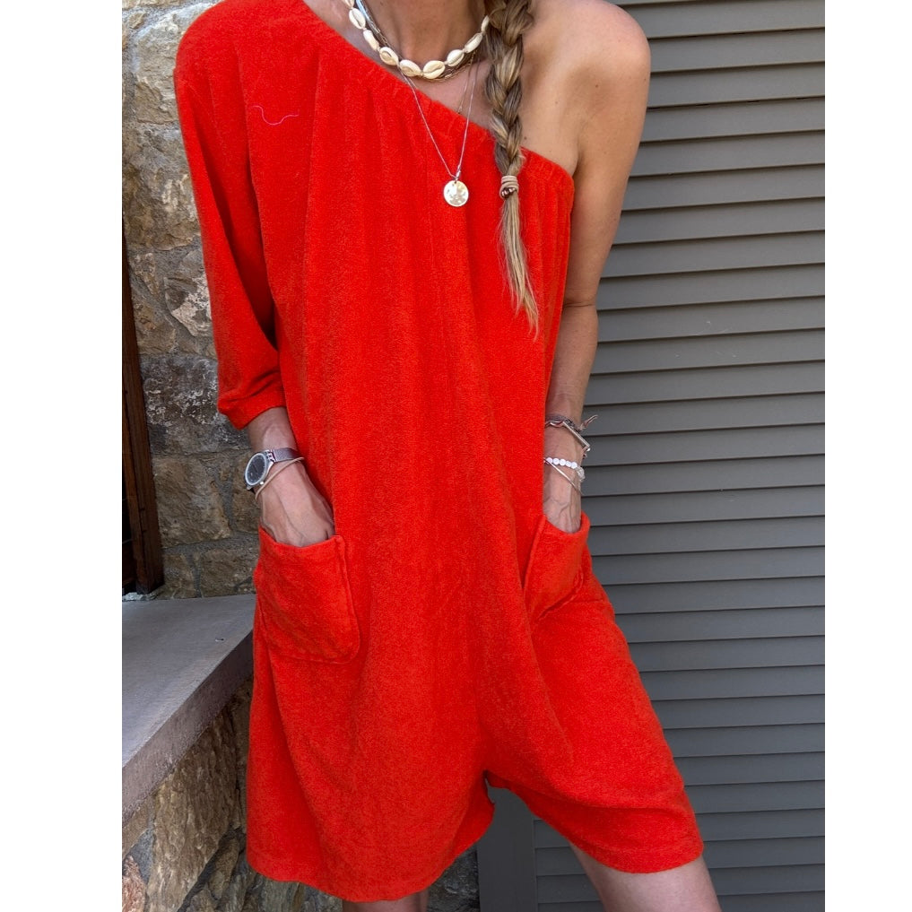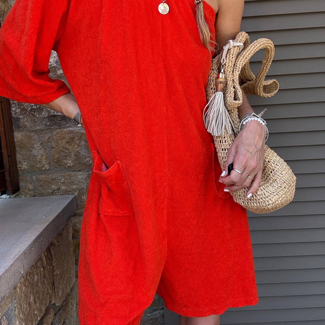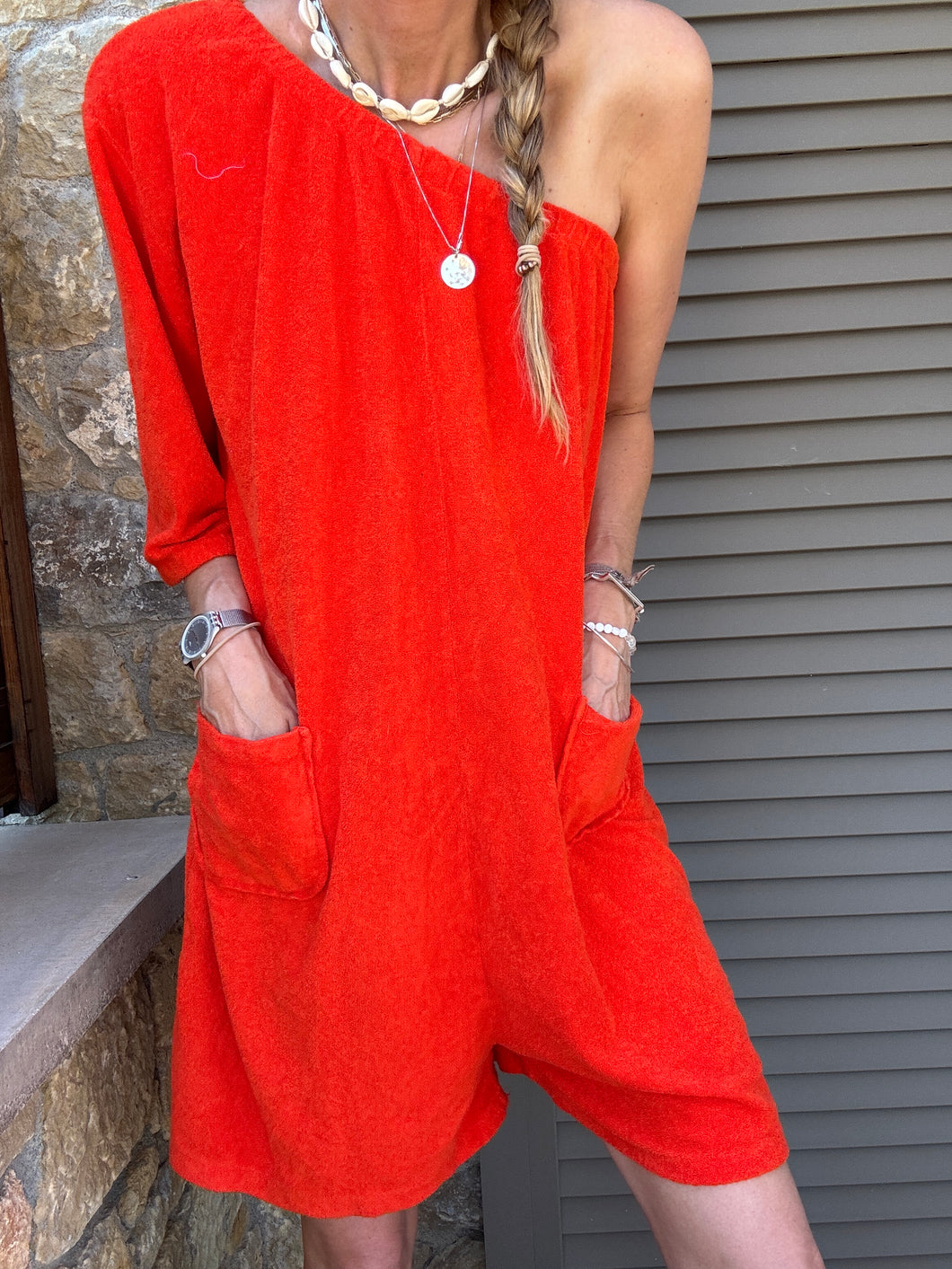 This towel playsuit is so perfect for holidays! Just slip it on after being in the pool or at the beach! Just add nice sandals for sundowners.