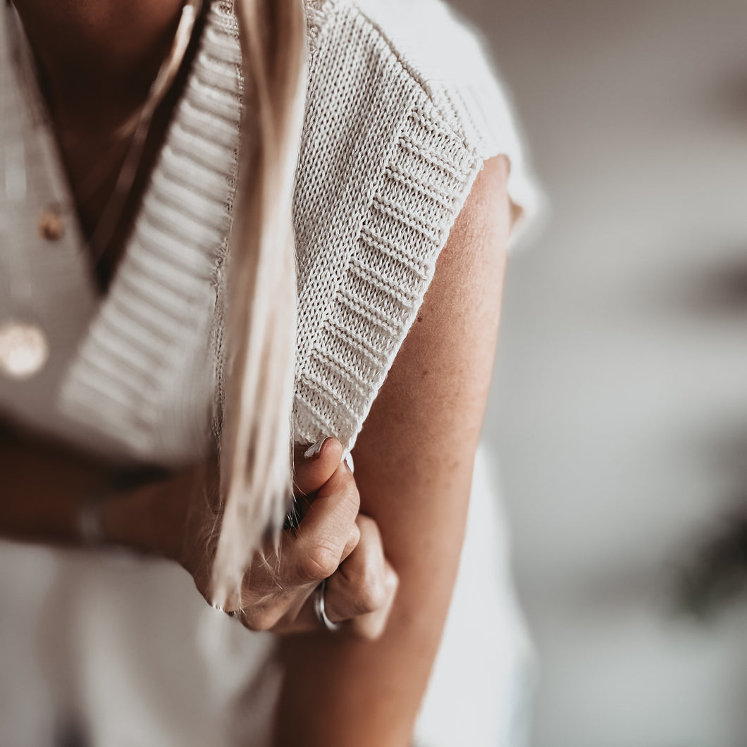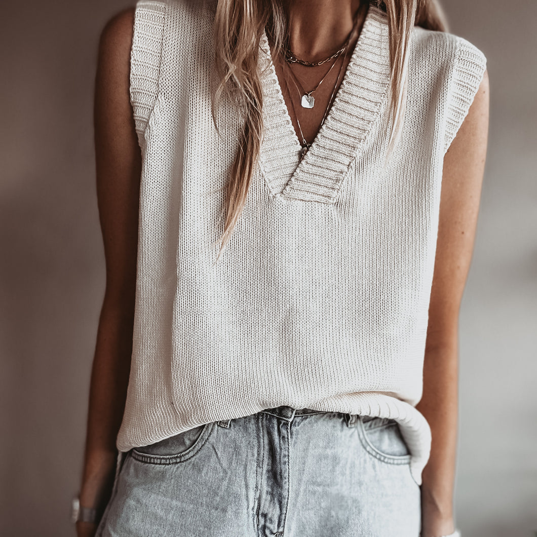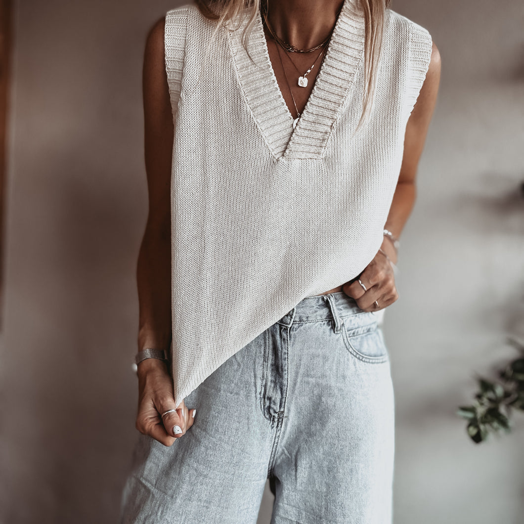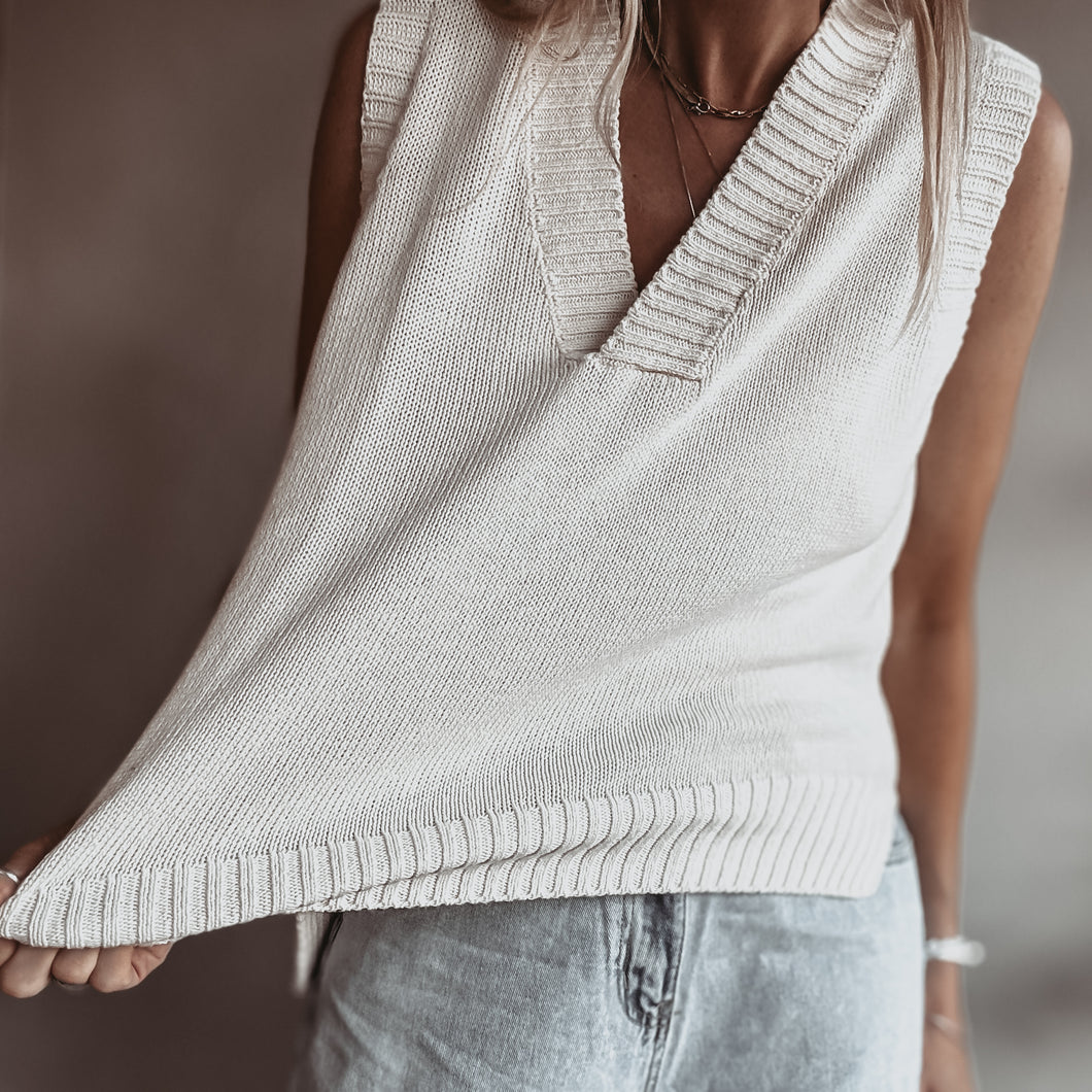 Rita VINTAGE WHITE knitted V tank *NEW*