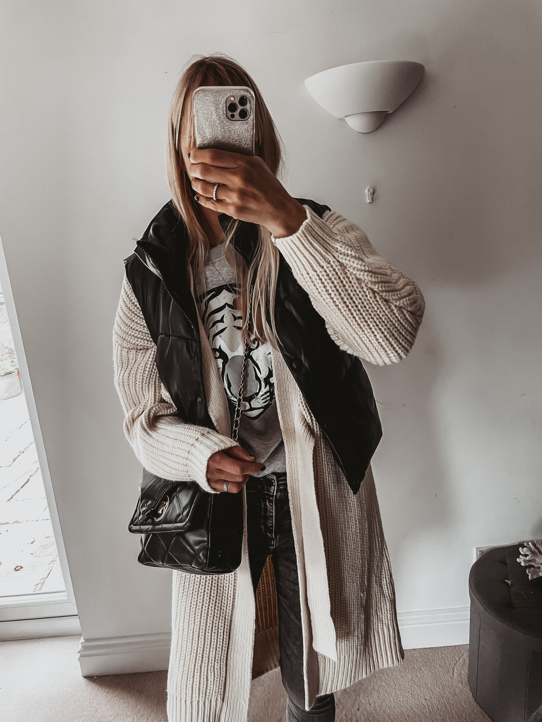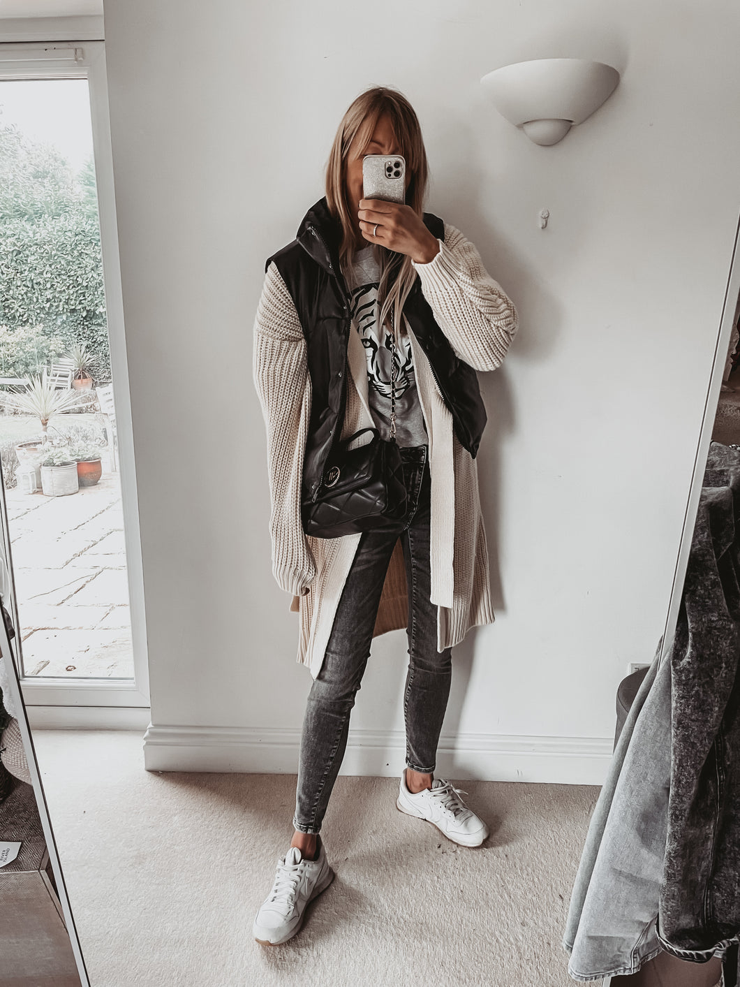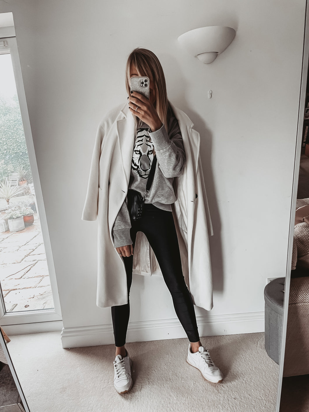 Love the funky edge to this oversized sweatshirt. Muted colours designed to go with pretty much everything. Really thick and cosy too! Try styling with shiny or faux leather leggings, chunky boots and a biker jacket.