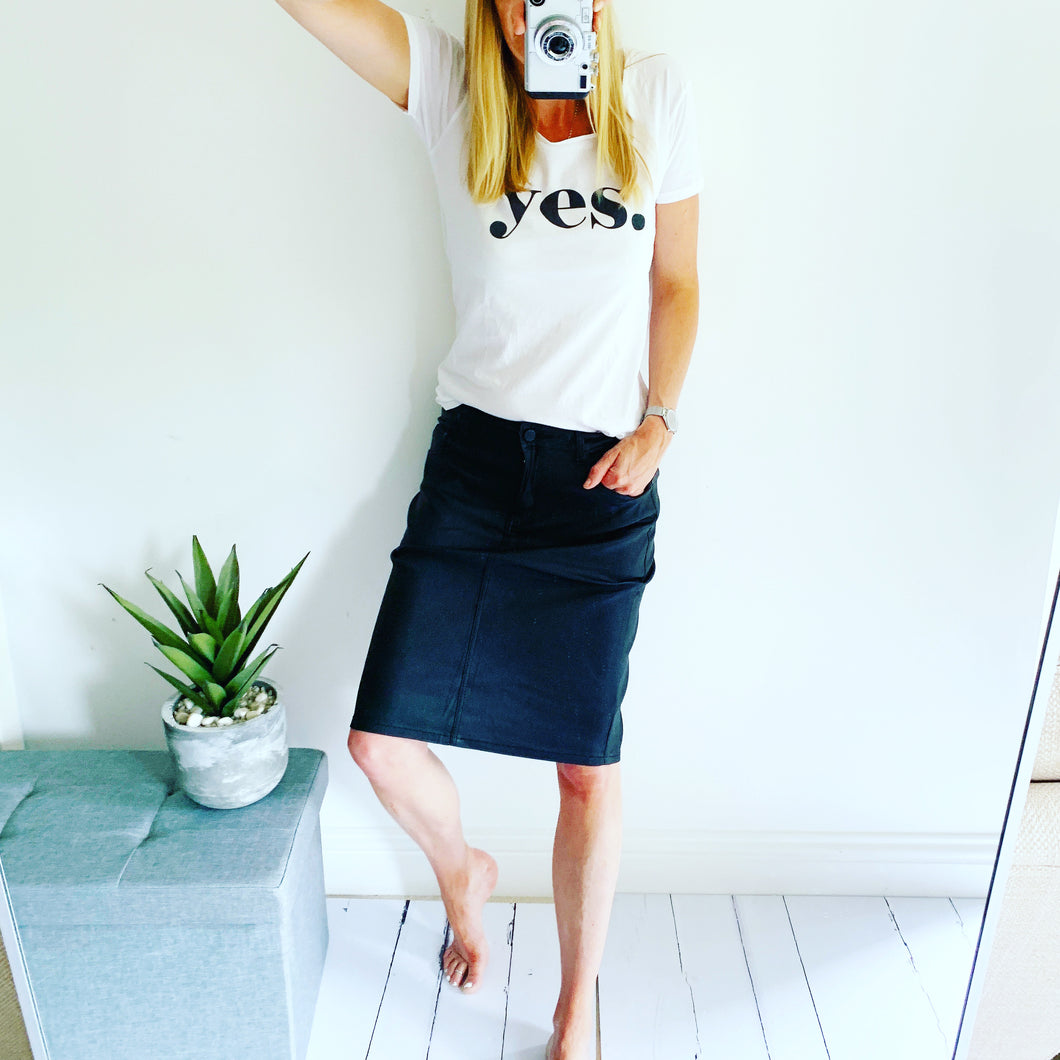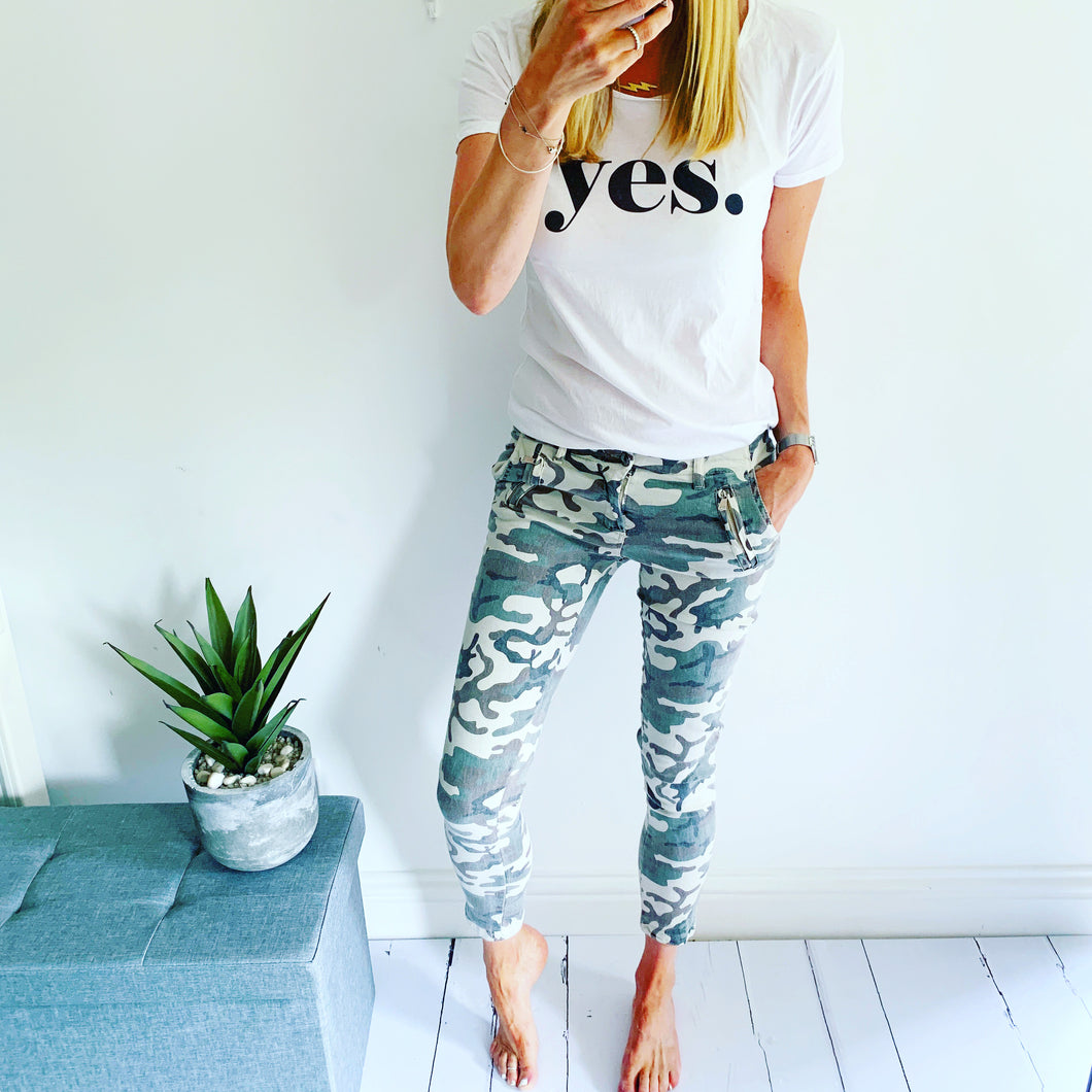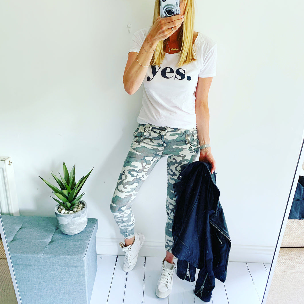 This tee is a lovely fit! Tighter over the chest and looser at the wait, very flattering!.Will go really well with any of my camo jeans or joggers. Wear with a leather jacket on cooler days or with a blazer to smarten it up.