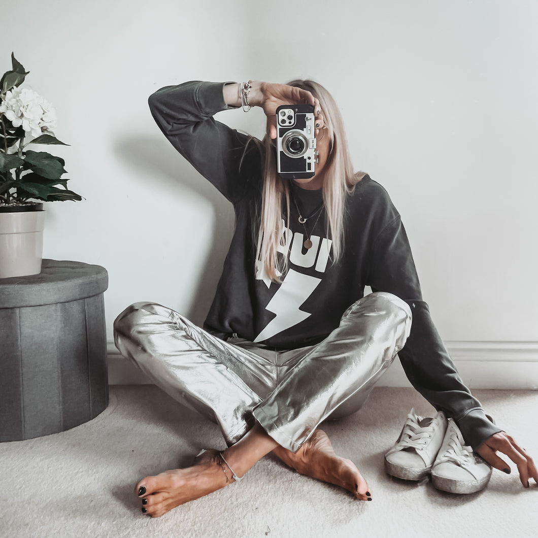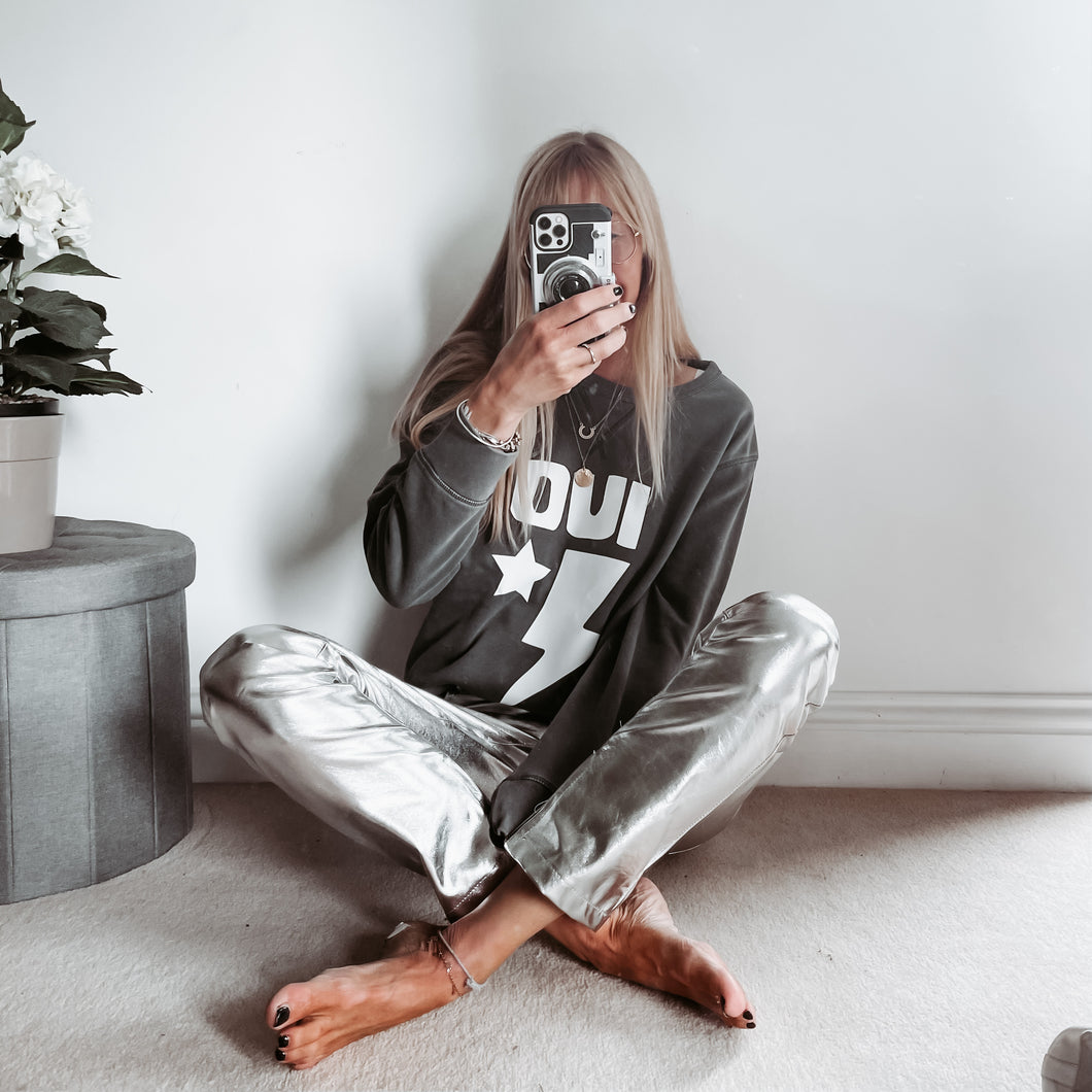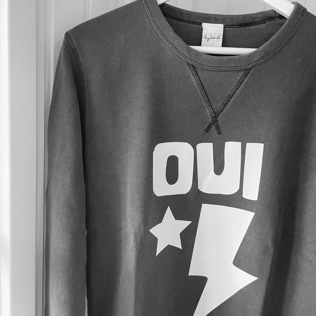 Love the fun style and positive vibes of this, printed on a gorgeous vintage washed 100% organic cotton sweatshirt. Try with my joggers or with a pair of shiny or leather leggings.