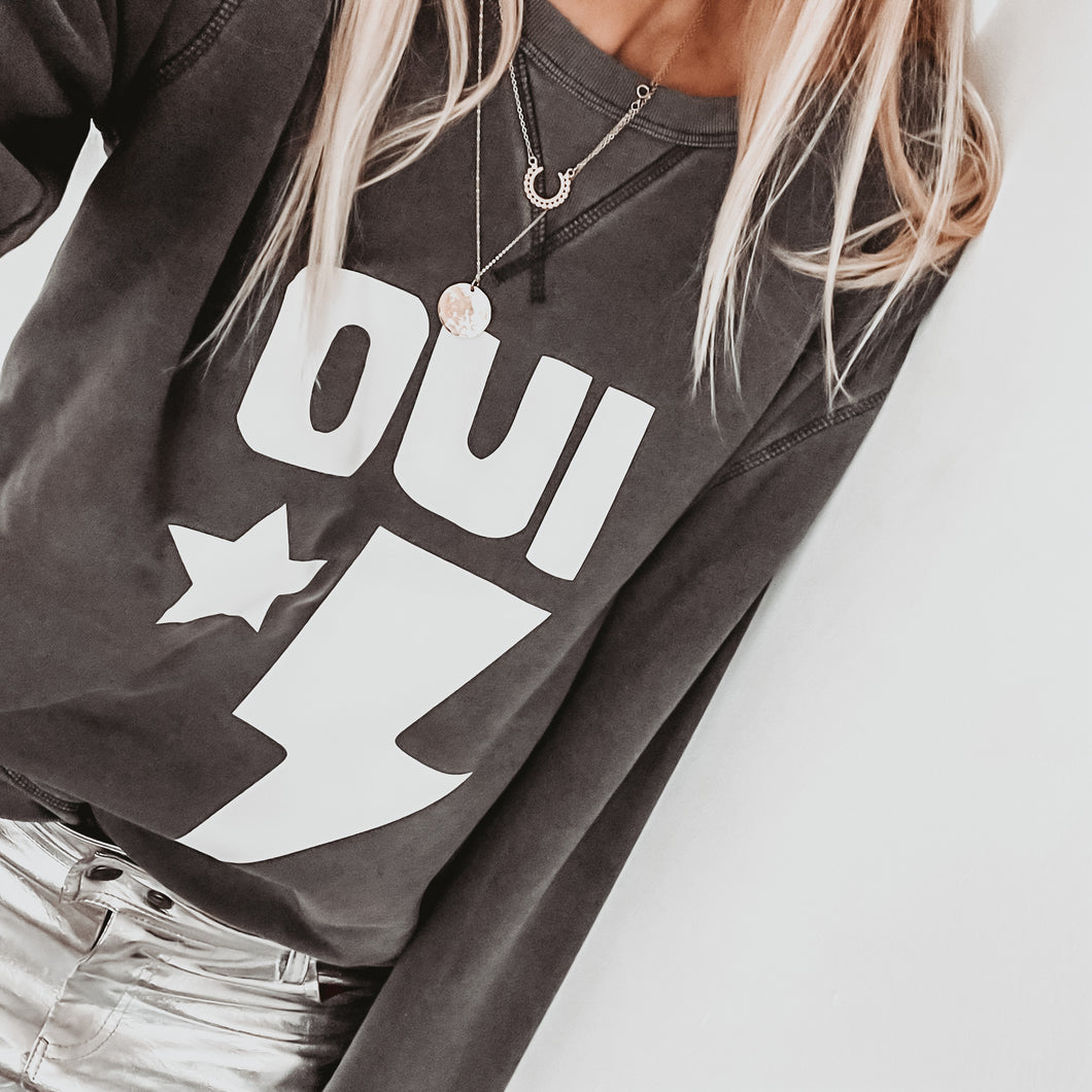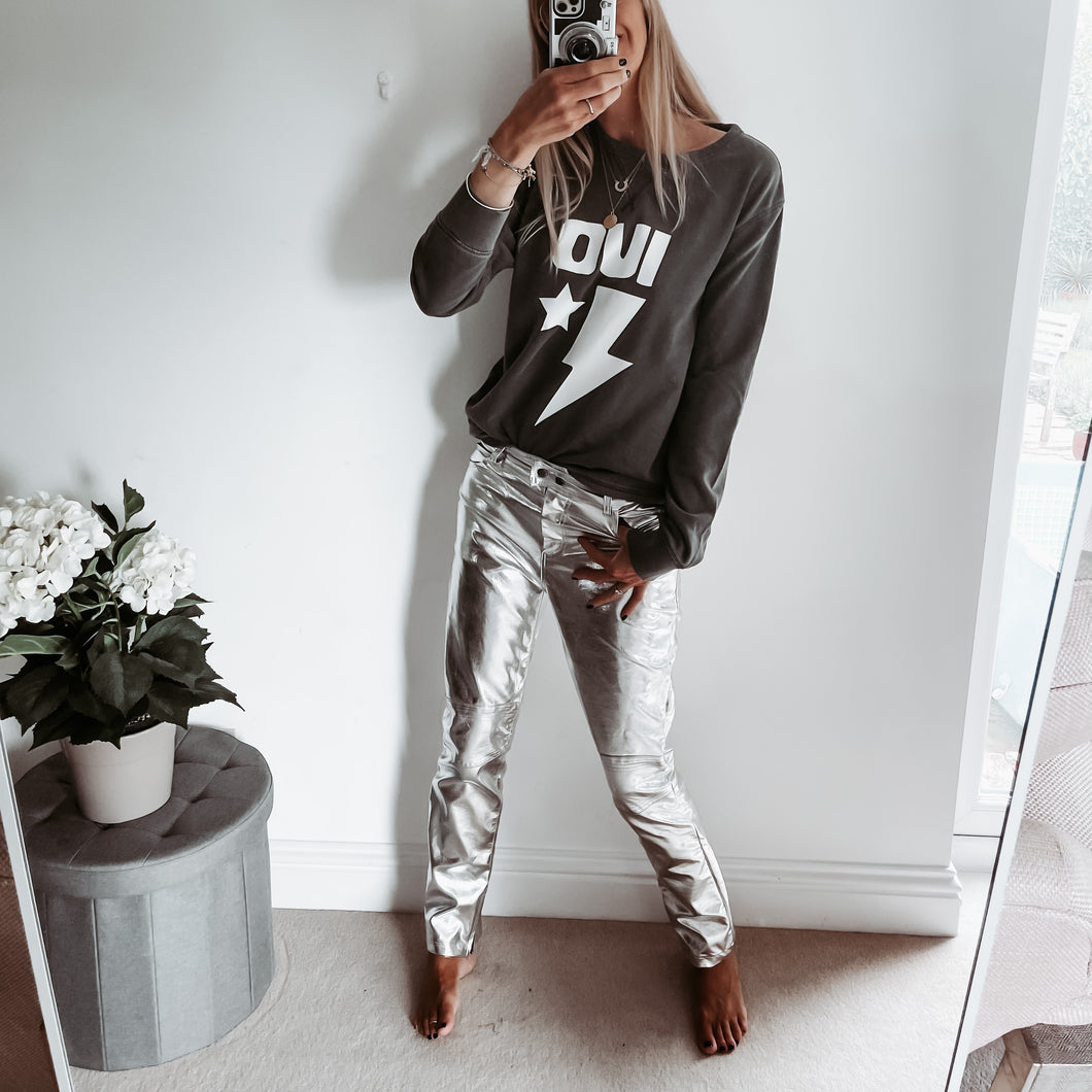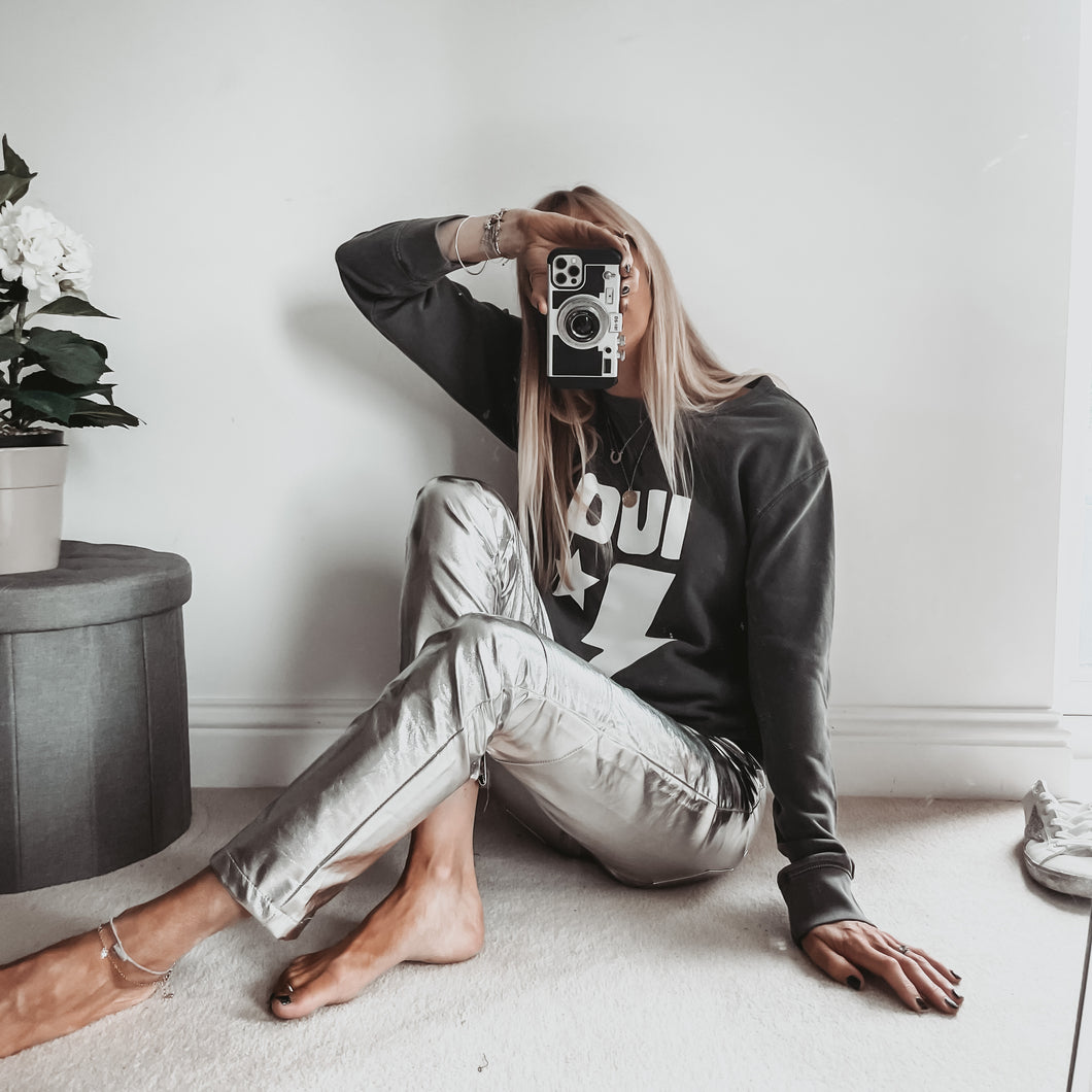 Love the fun style and positive vibes of this, printed on a gorgeous vintage washed 100% organic cotton sweatshirt. Try with my joggers or with a pair of shiny or leather leggings.
