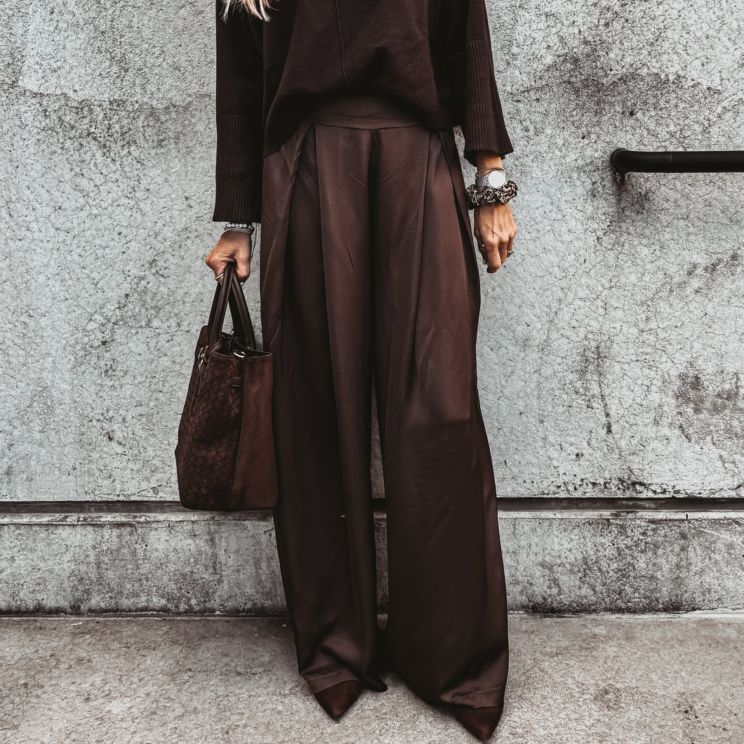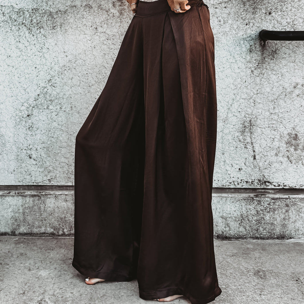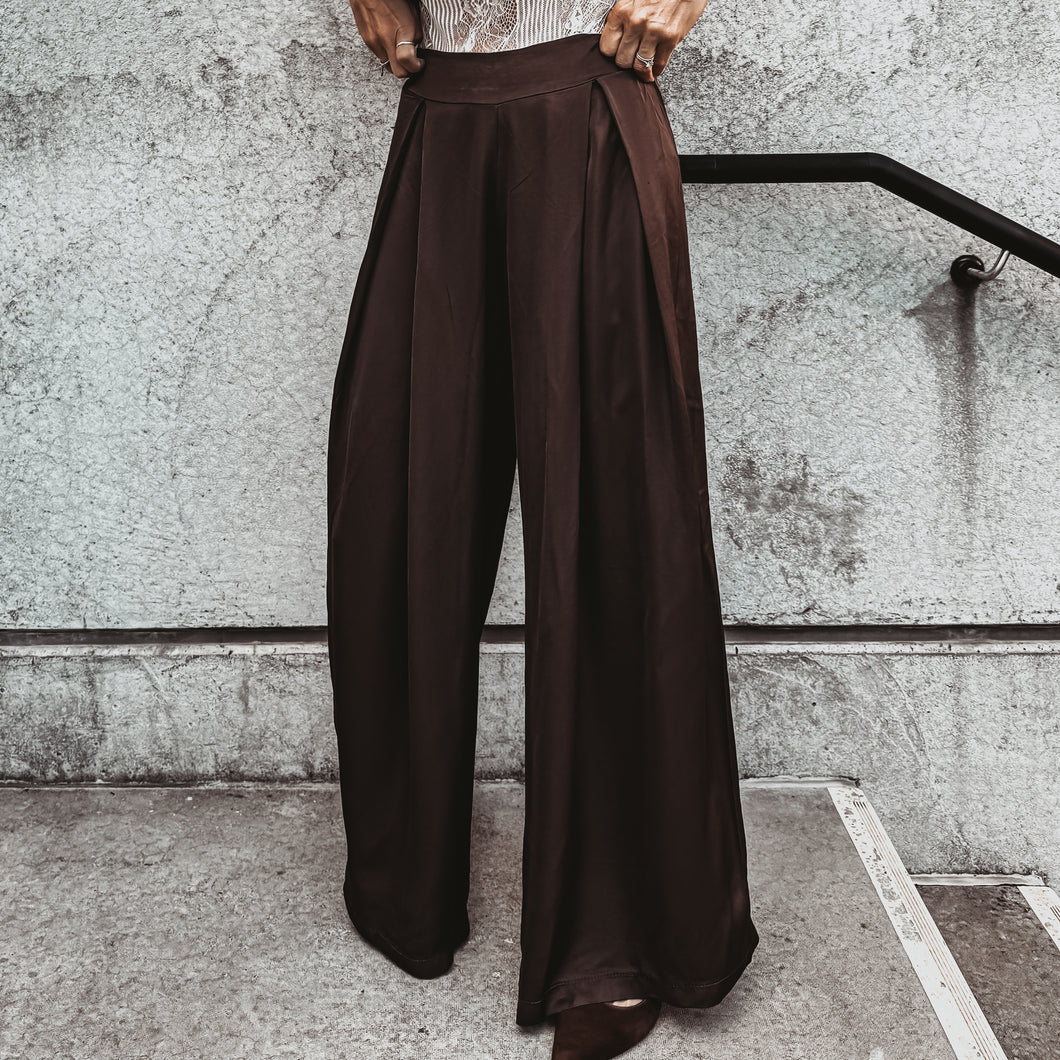 Love a wide leg palazzo and these satin ones are just the best! Obsessed with this deep chocolate colour. Wear with trainers and a tee during the day, and sandals and a blazer at night. Super light so perfect to take on holiday!