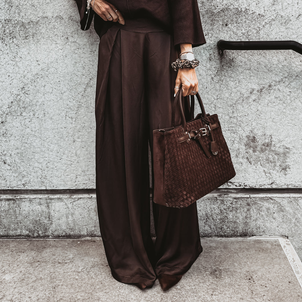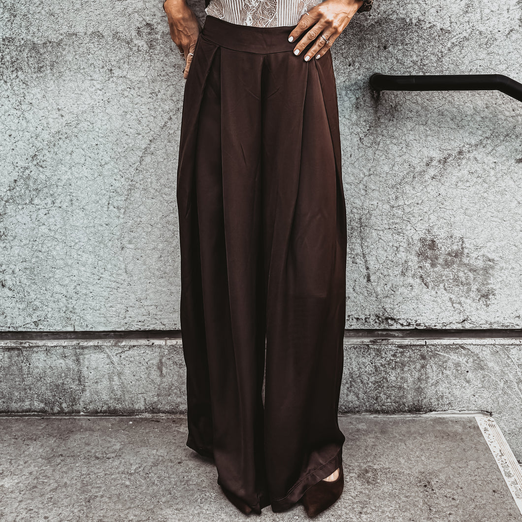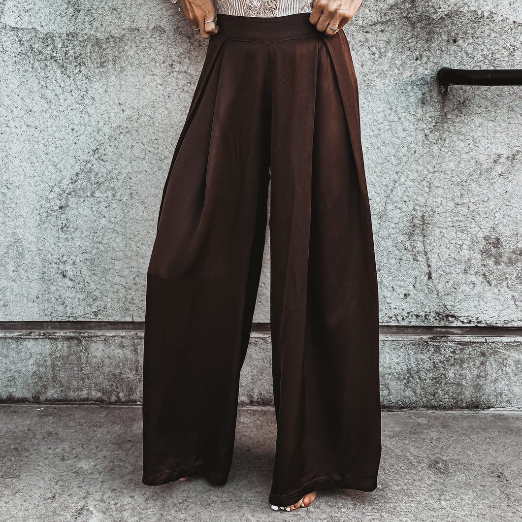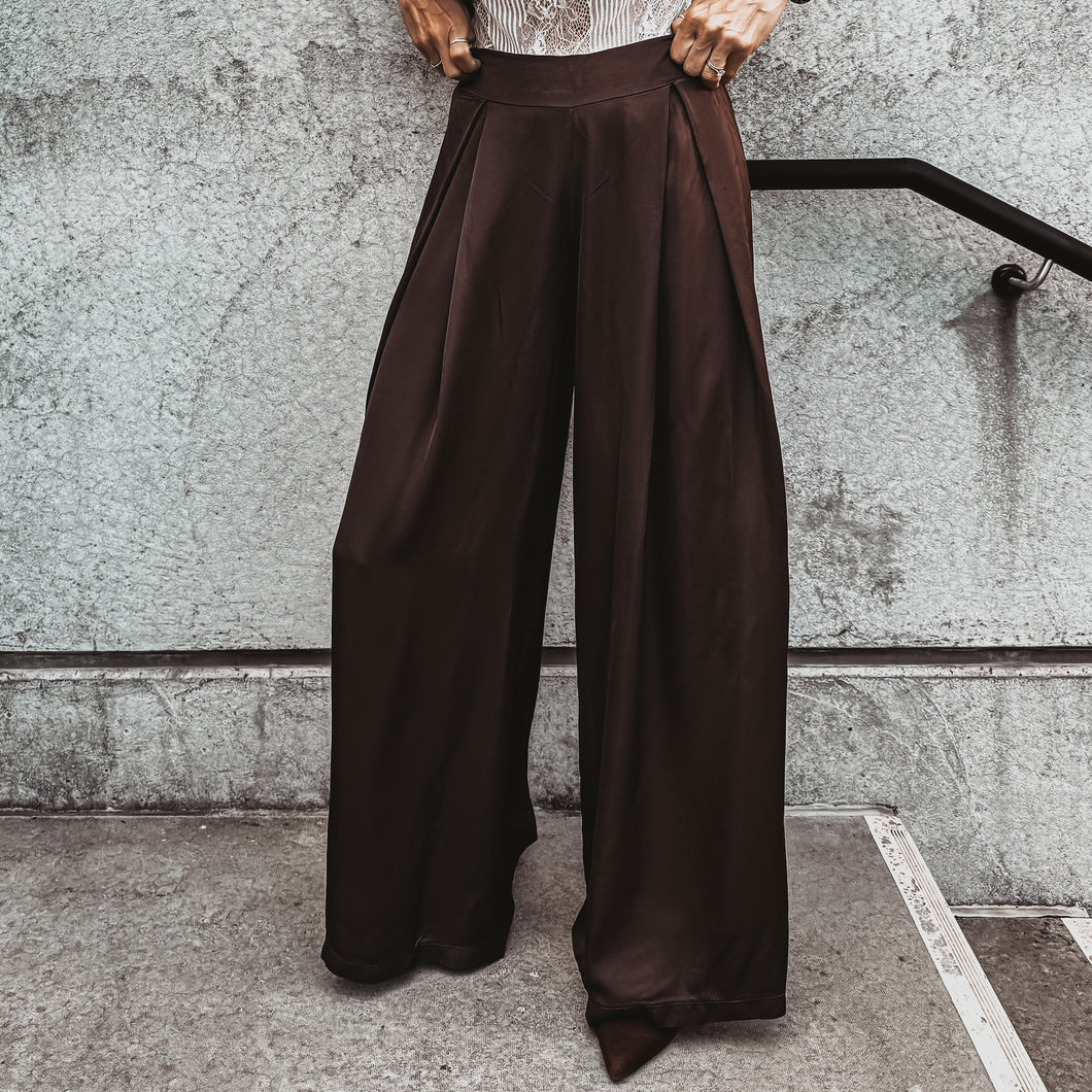 Love a wide leg palazzo and these satin ones are just the best! Obsessed with this deep chocolate colour. Wear with trainers and a tee during the day, and sandals and a blazer at night. Super light so perfect to take on holiday!
