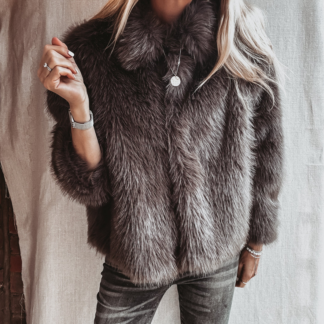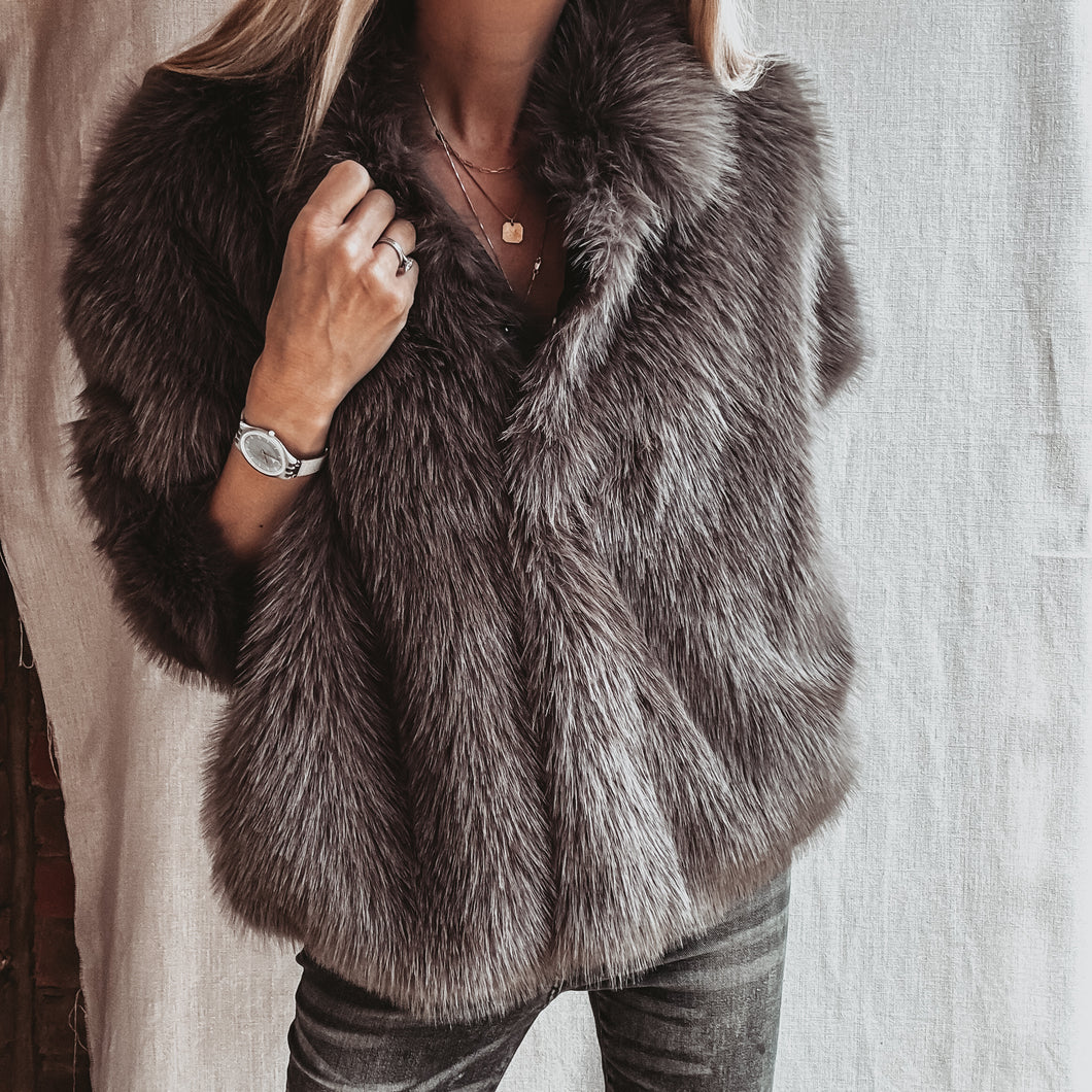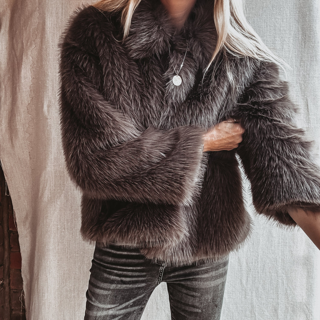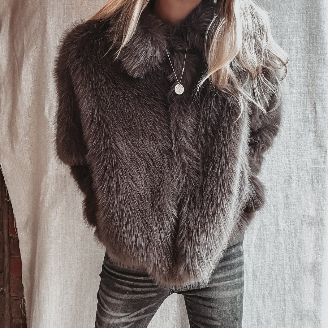 A super stylish faux fur jacket. Such a statement piece. Subtle metal popper closures. Super warm and cosy. Pockets too.