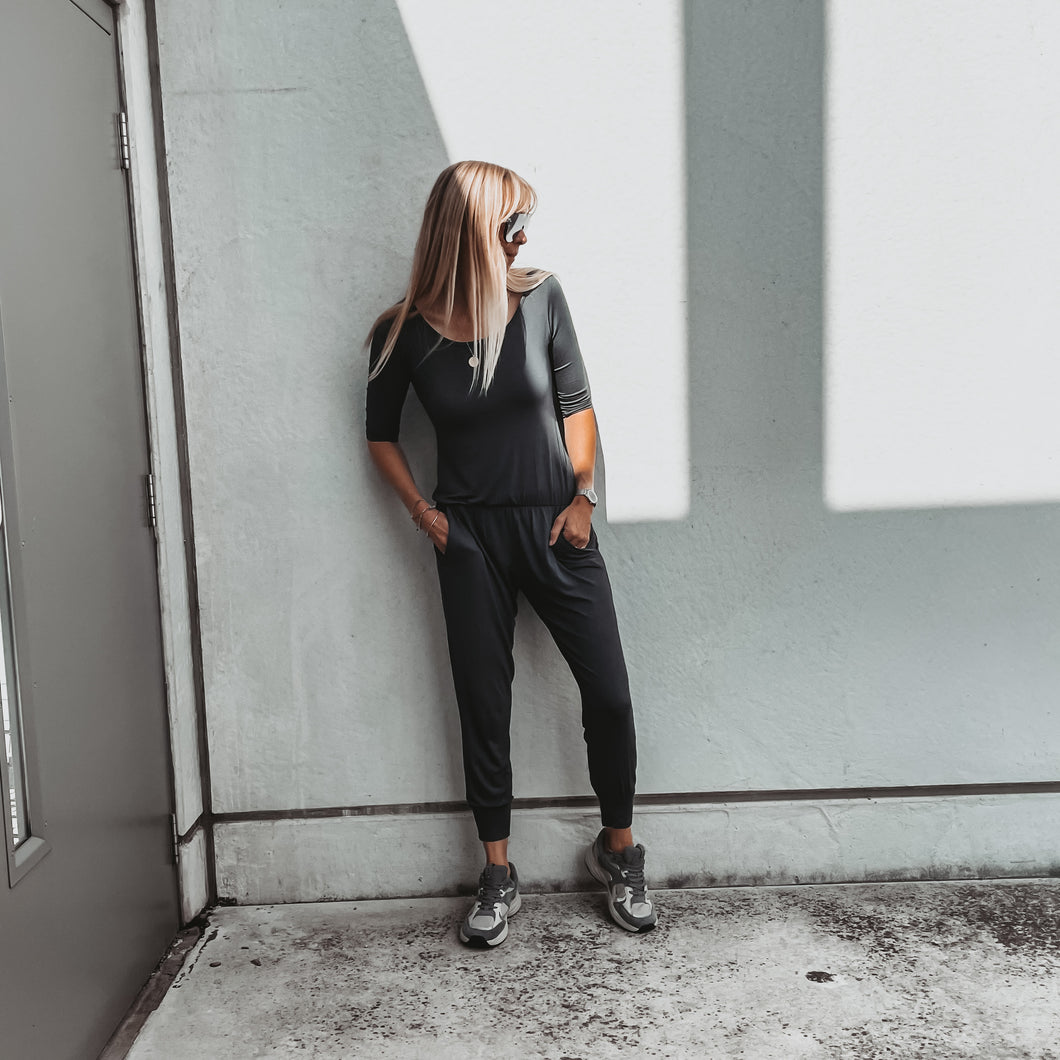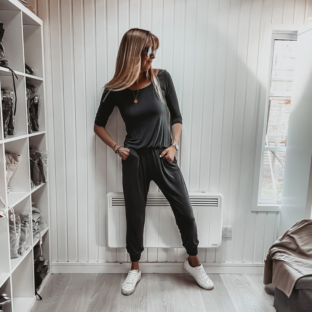 Long sleeved DARK GREY jumpsuit with pockets