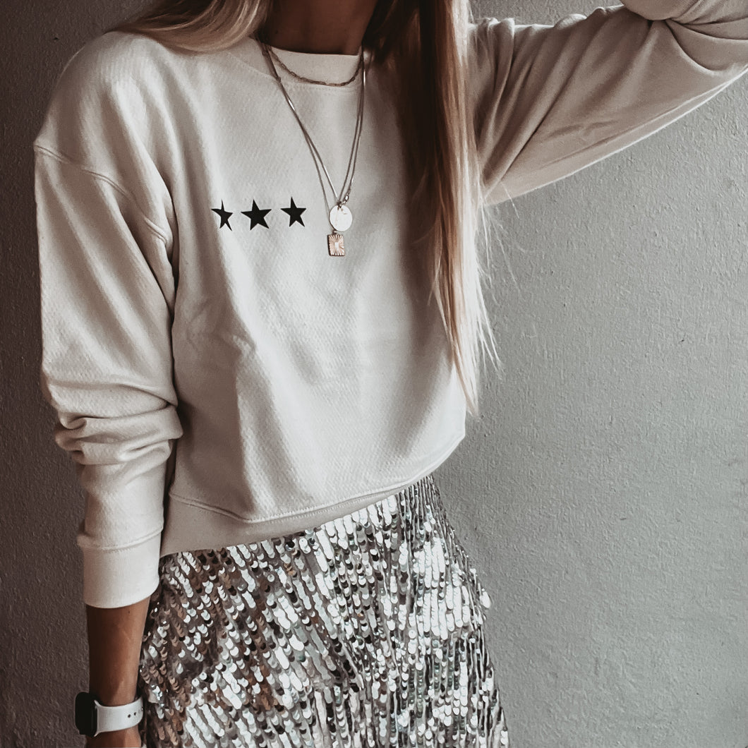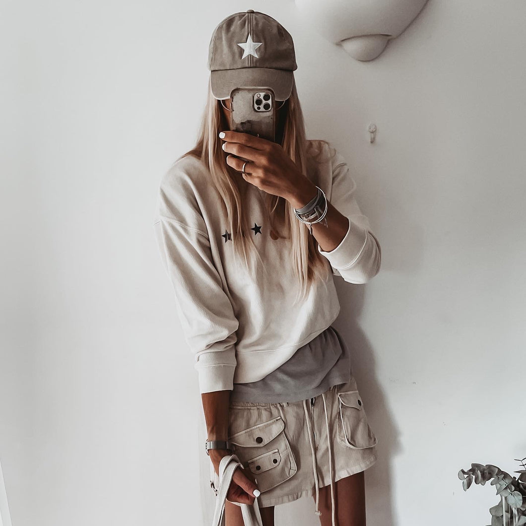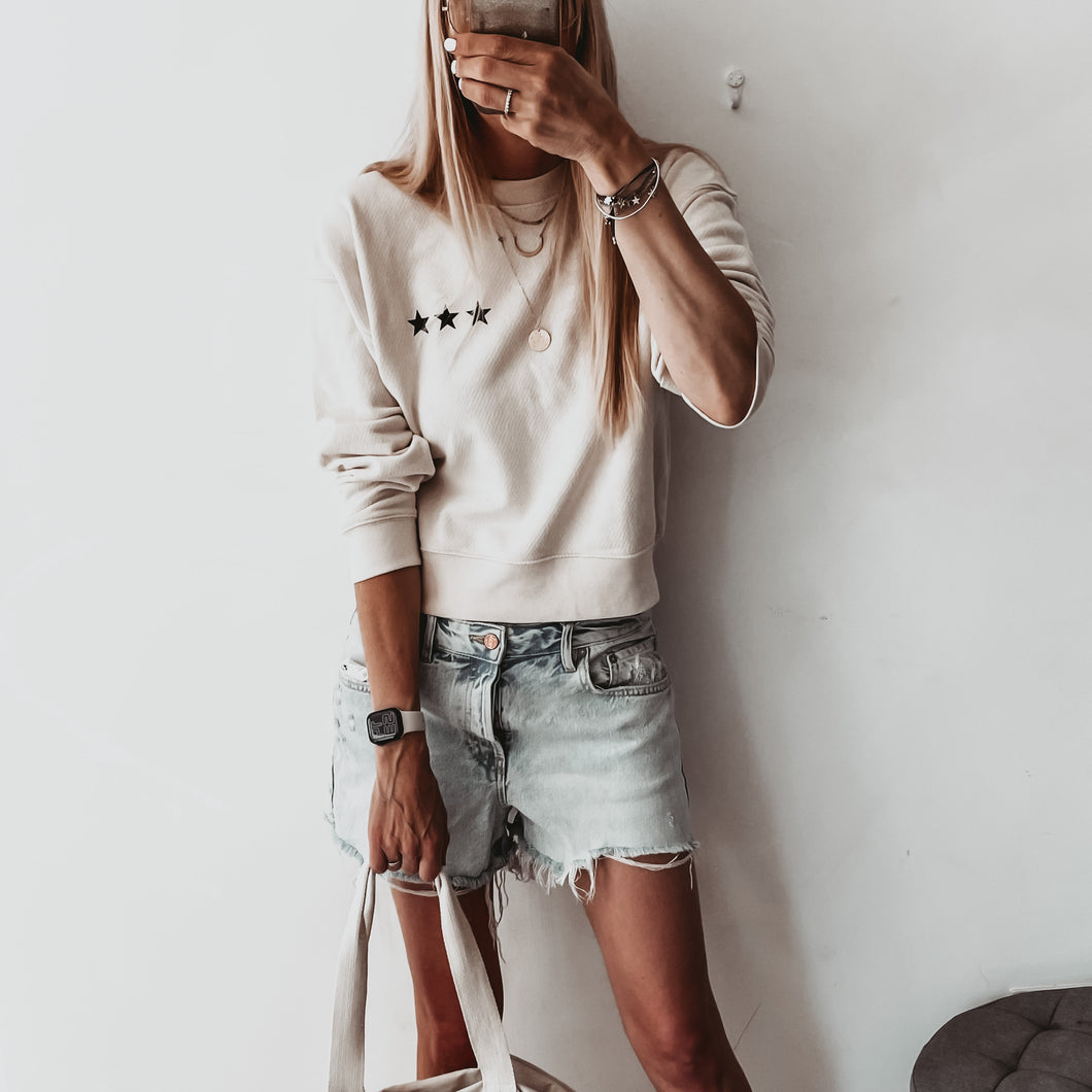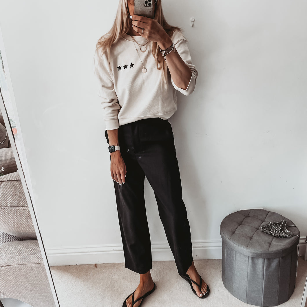 Love the slightly cropped fit of this new sweatshirt, will look great with high waisted jeans, or tailored trousers, or will go perfectly with my new Ibiza relaxed joggers. Or try styling with black joggers & a biker jacket or with a pair of shiny or leather leggings & a blazer.