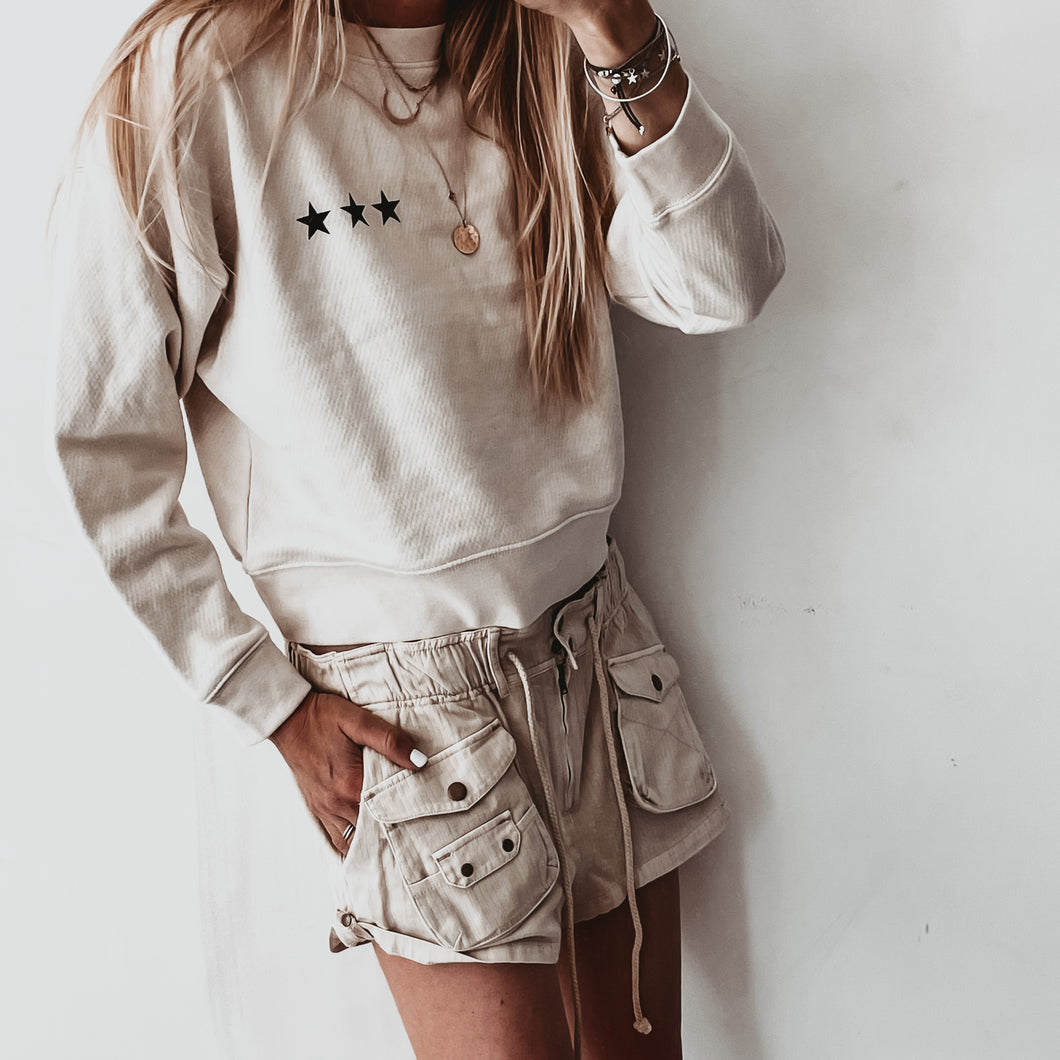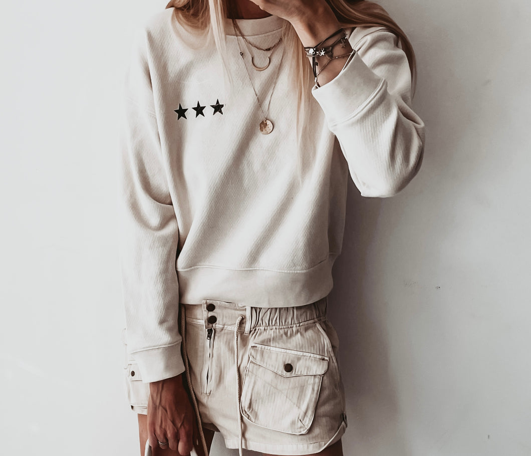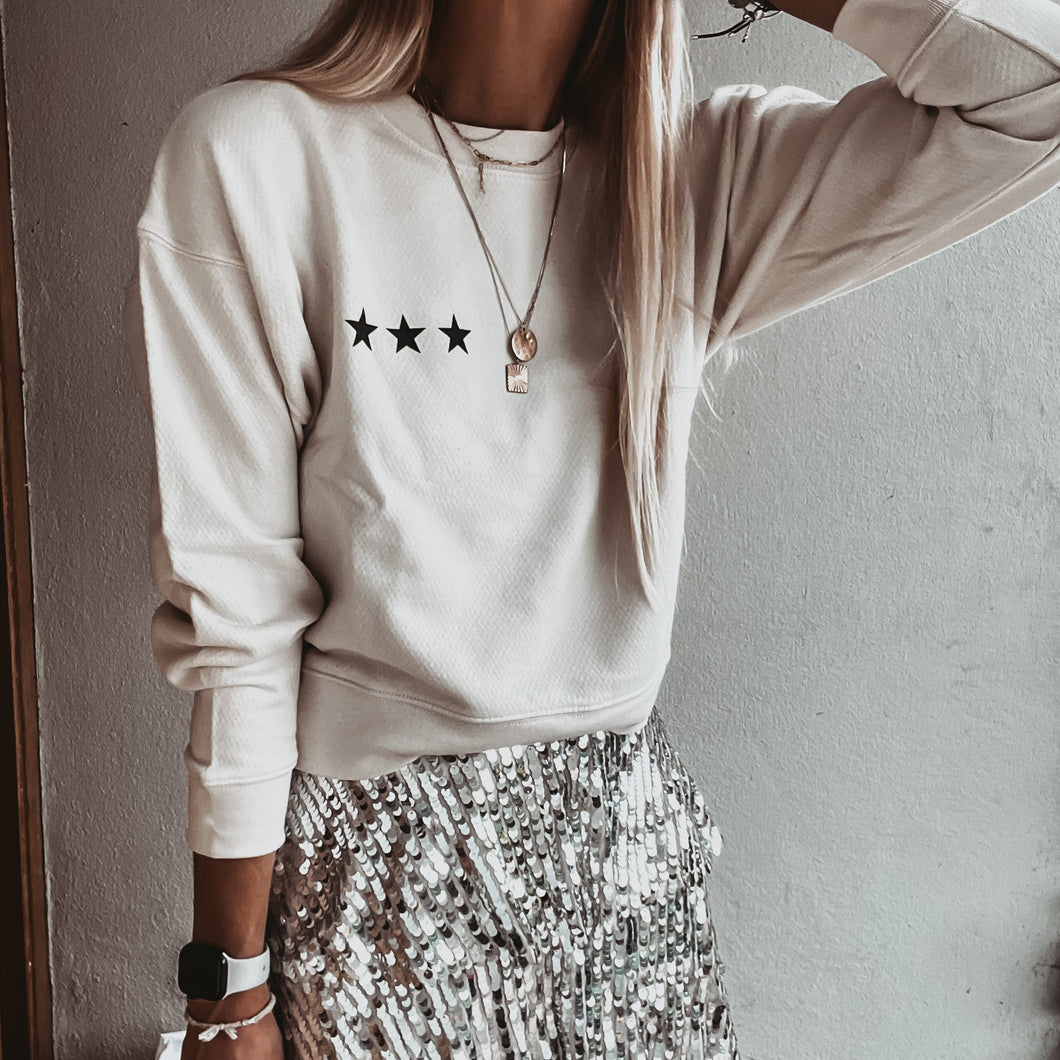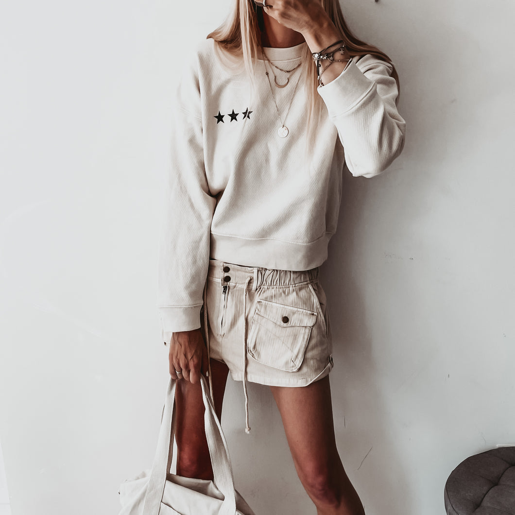 Love the slightly cropped fit of this new sweatshirt, will look great with high waisted jeans, or tailored trousers, or will go perfectly with my new Ibiza relaxed joggers. Or try styling with black joggers & a biker jacket or with a pair of shiny or leather leggings & a blazer.