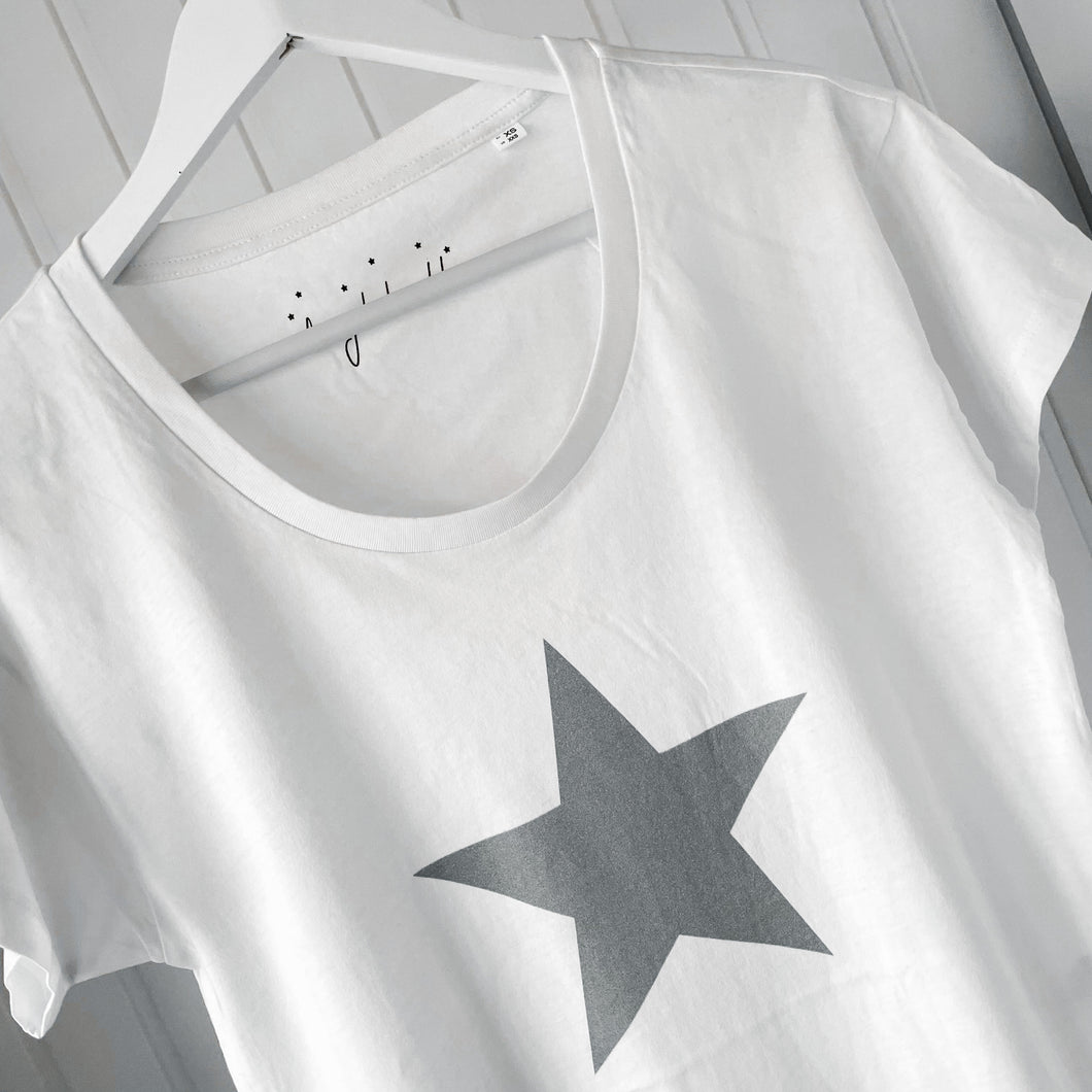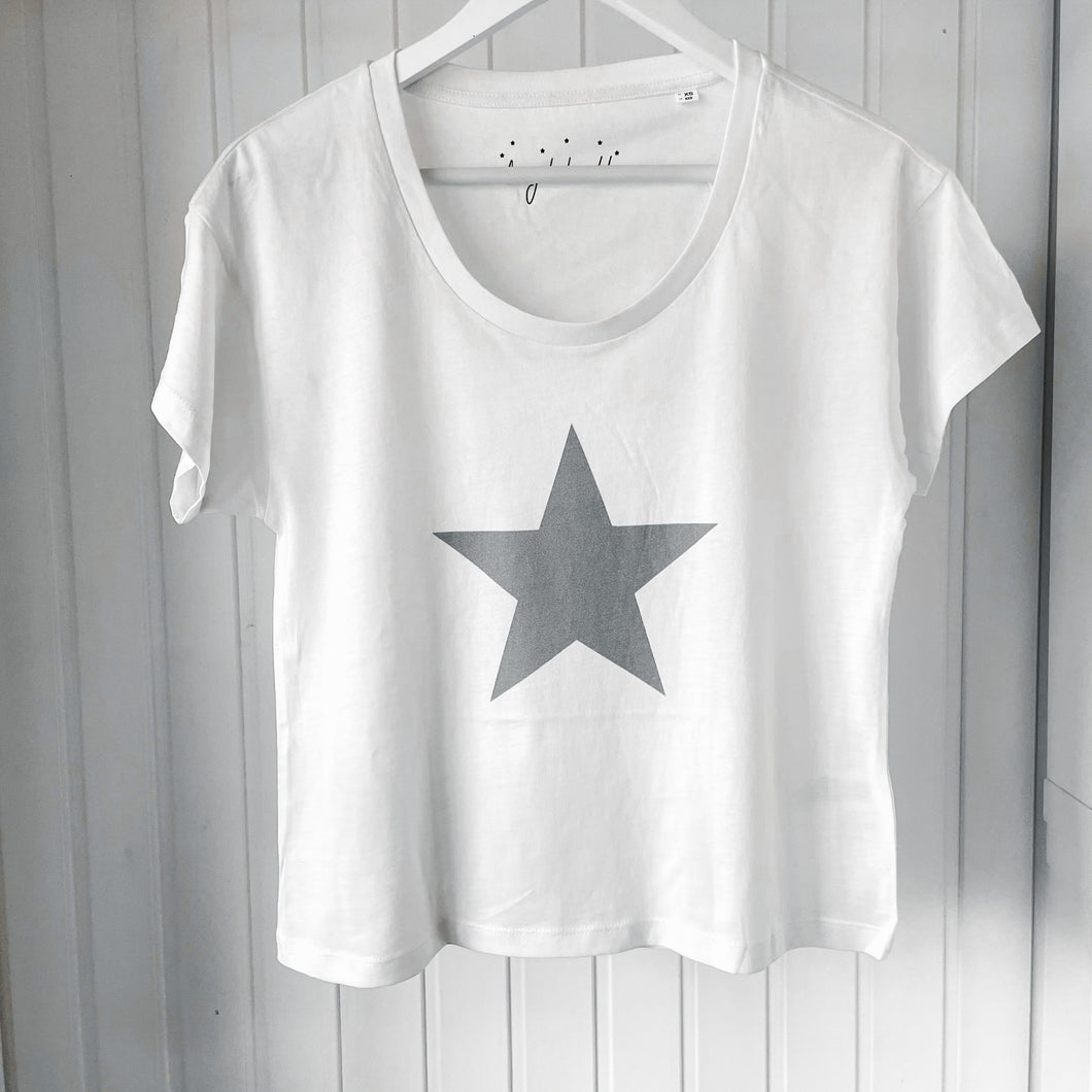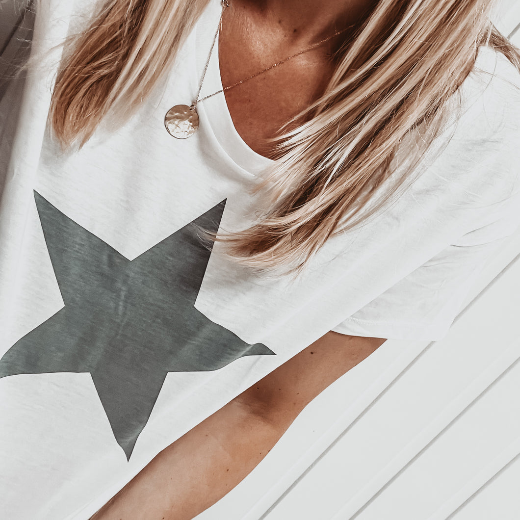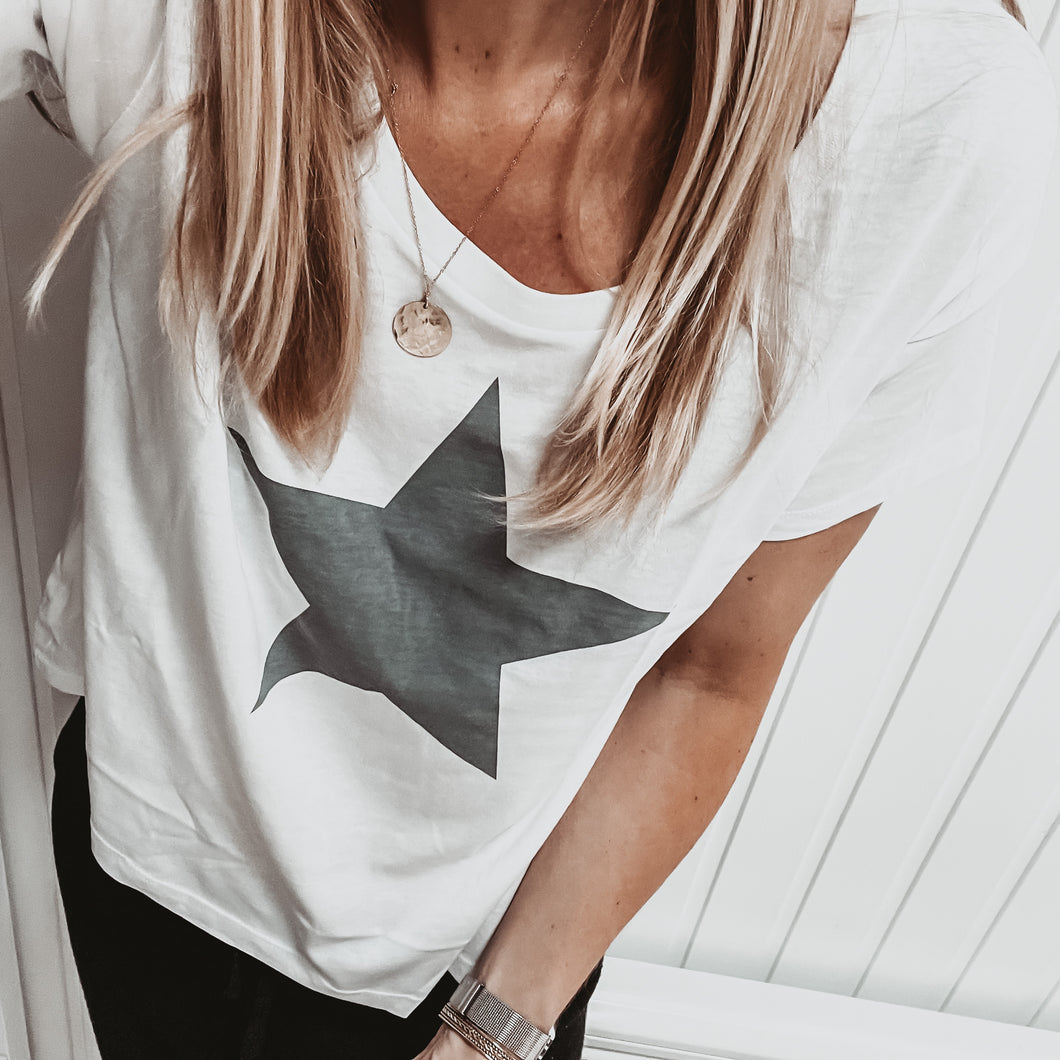 Boxy grey star white tee *boxy relaxed fit*