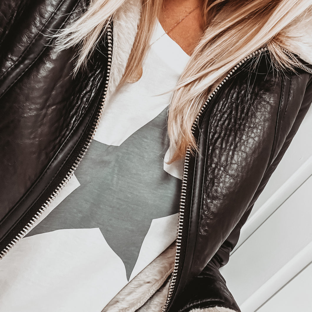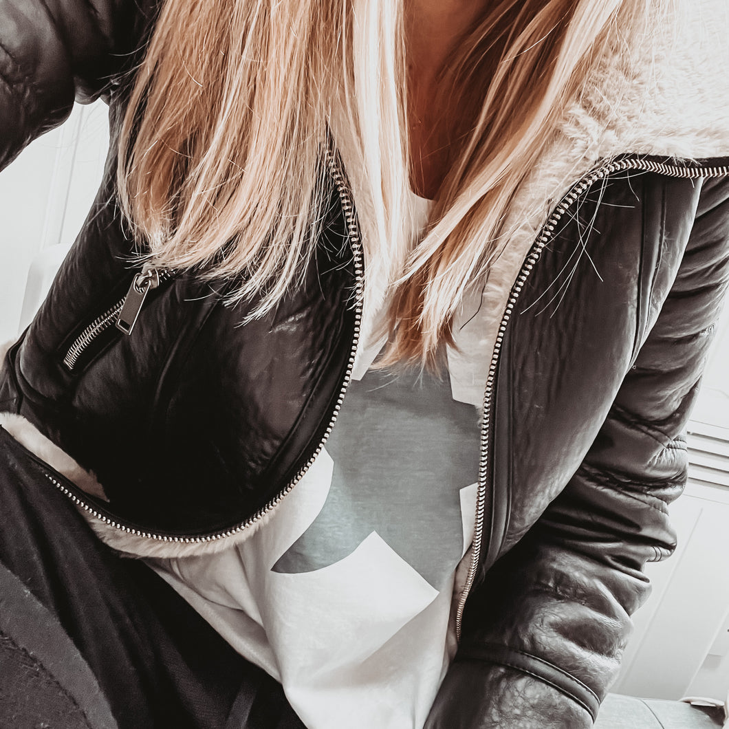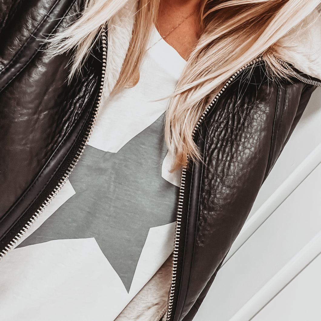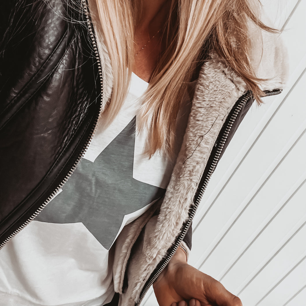 Boxy grey star white tee *boxy relaxed fit*