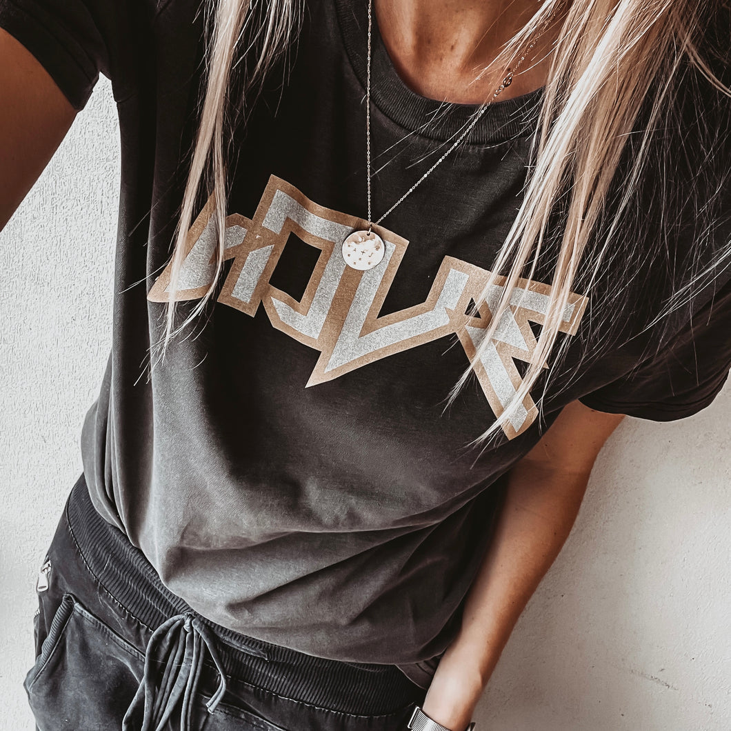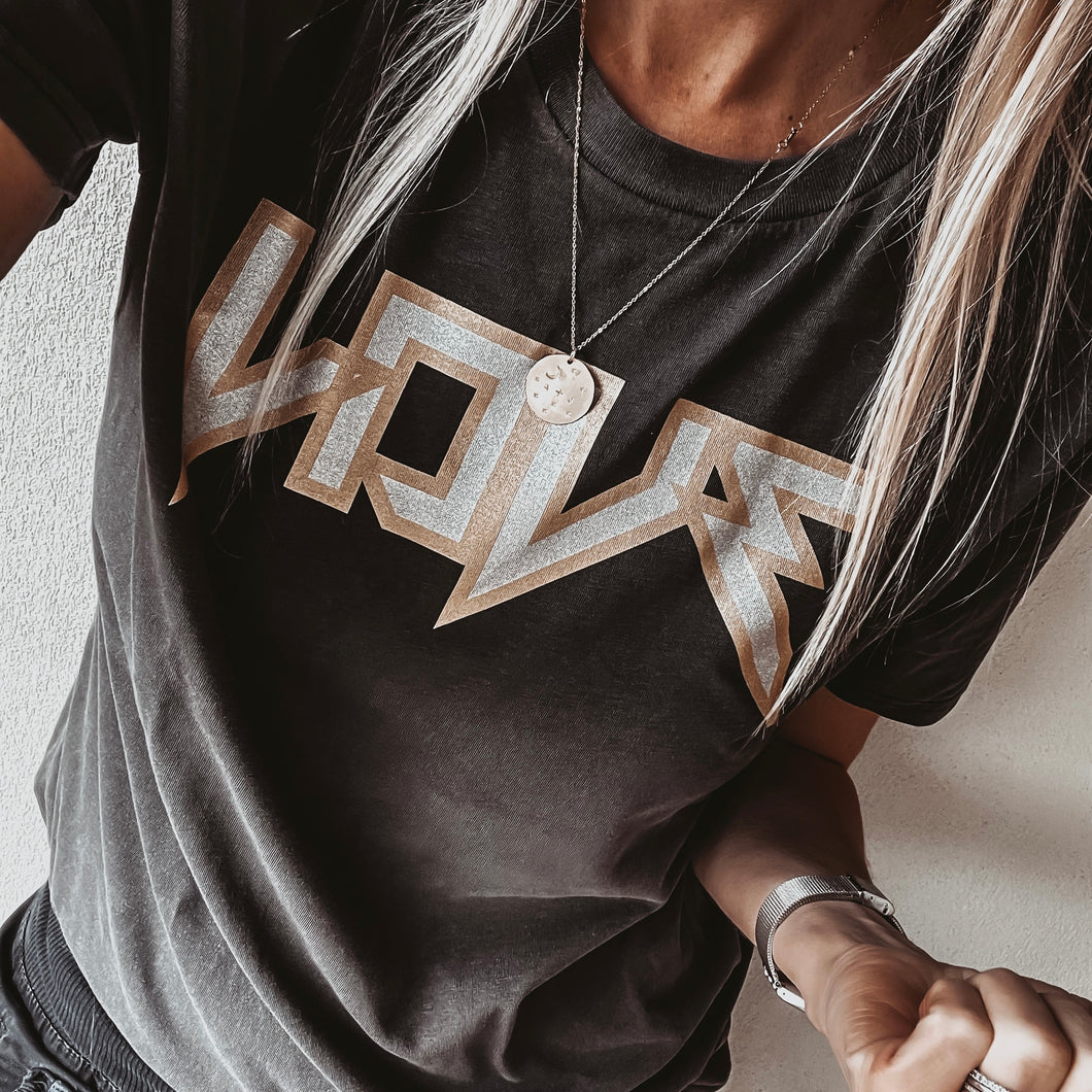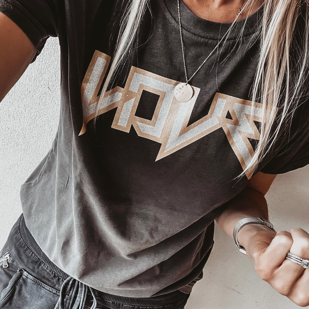 Silver & gold glitter LOVE vintage black boyfriend tee *boyfriend fit*