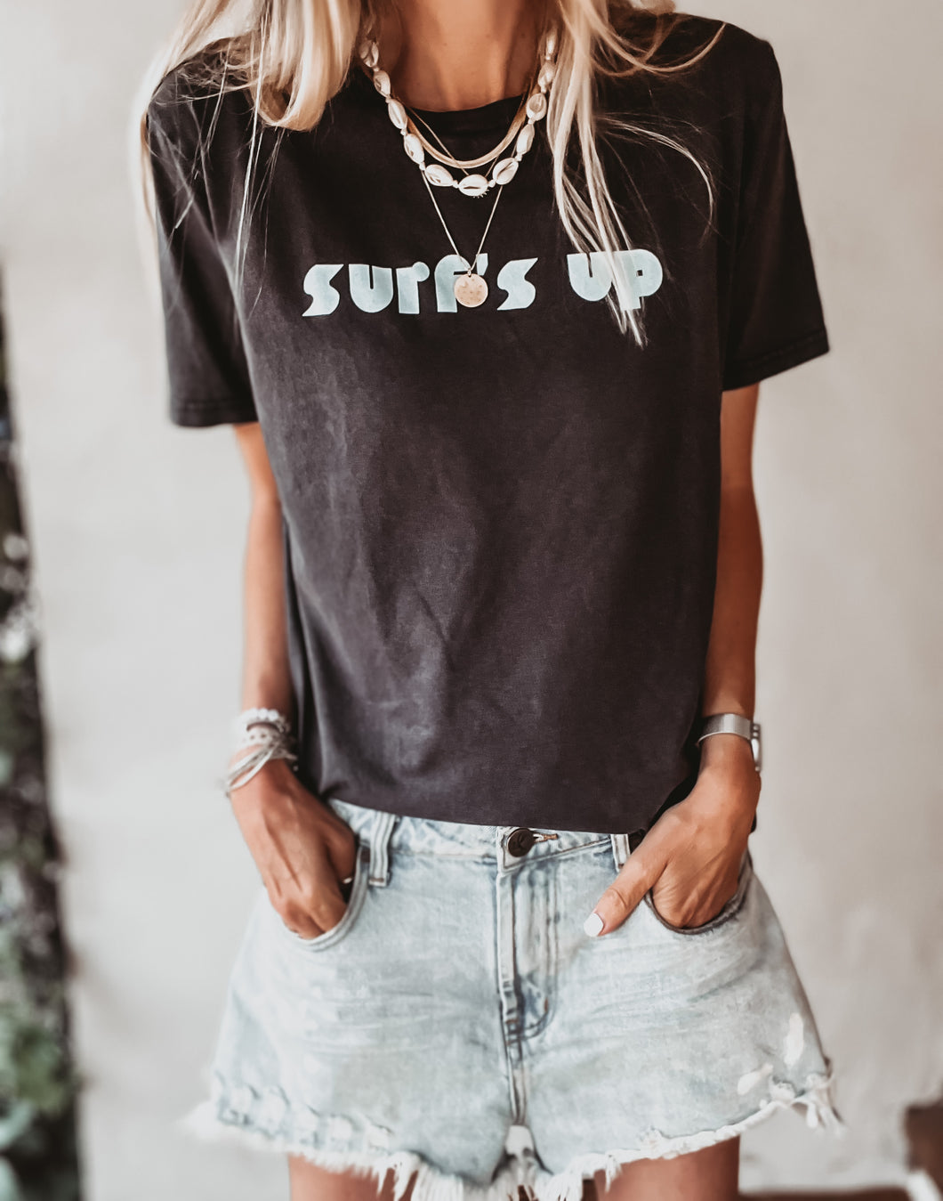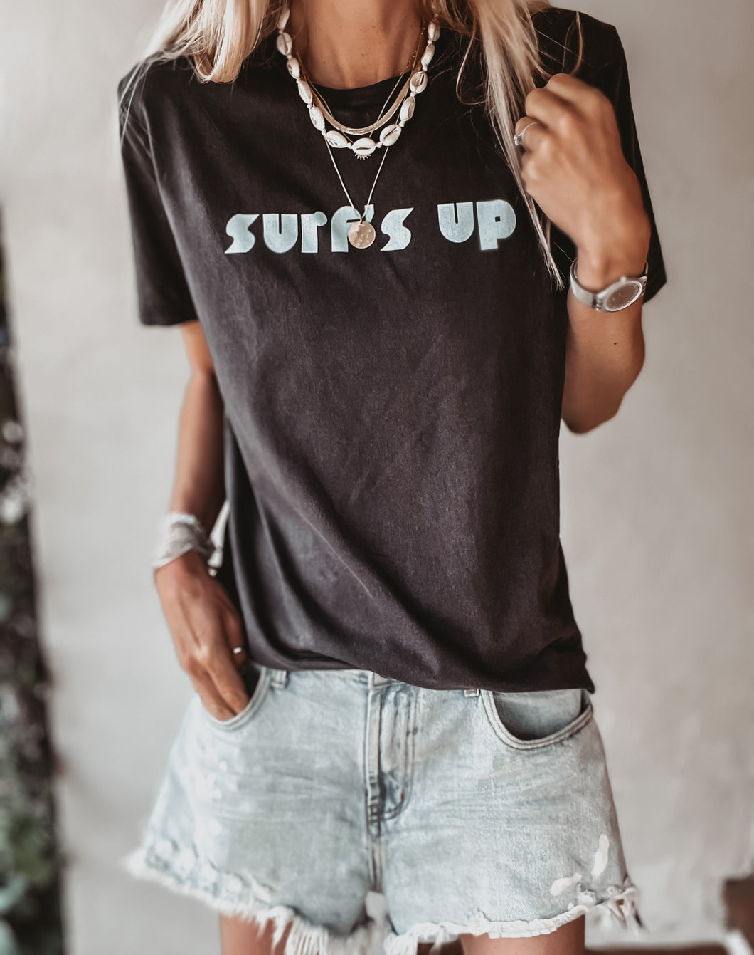 SURF’S UP vintage charcoal tee *boyfriend fit* *NEW*