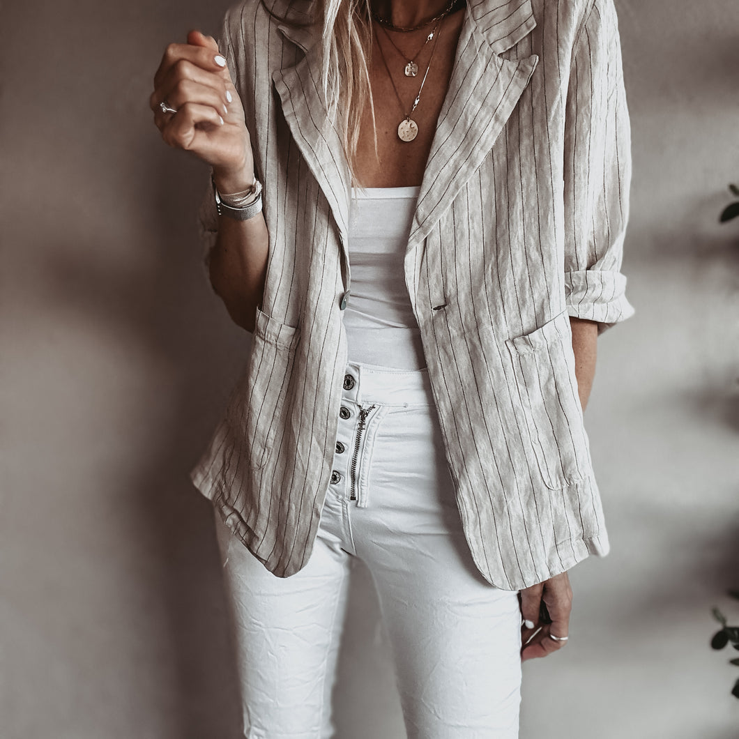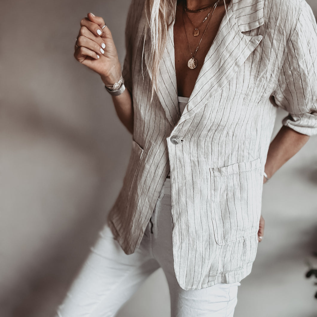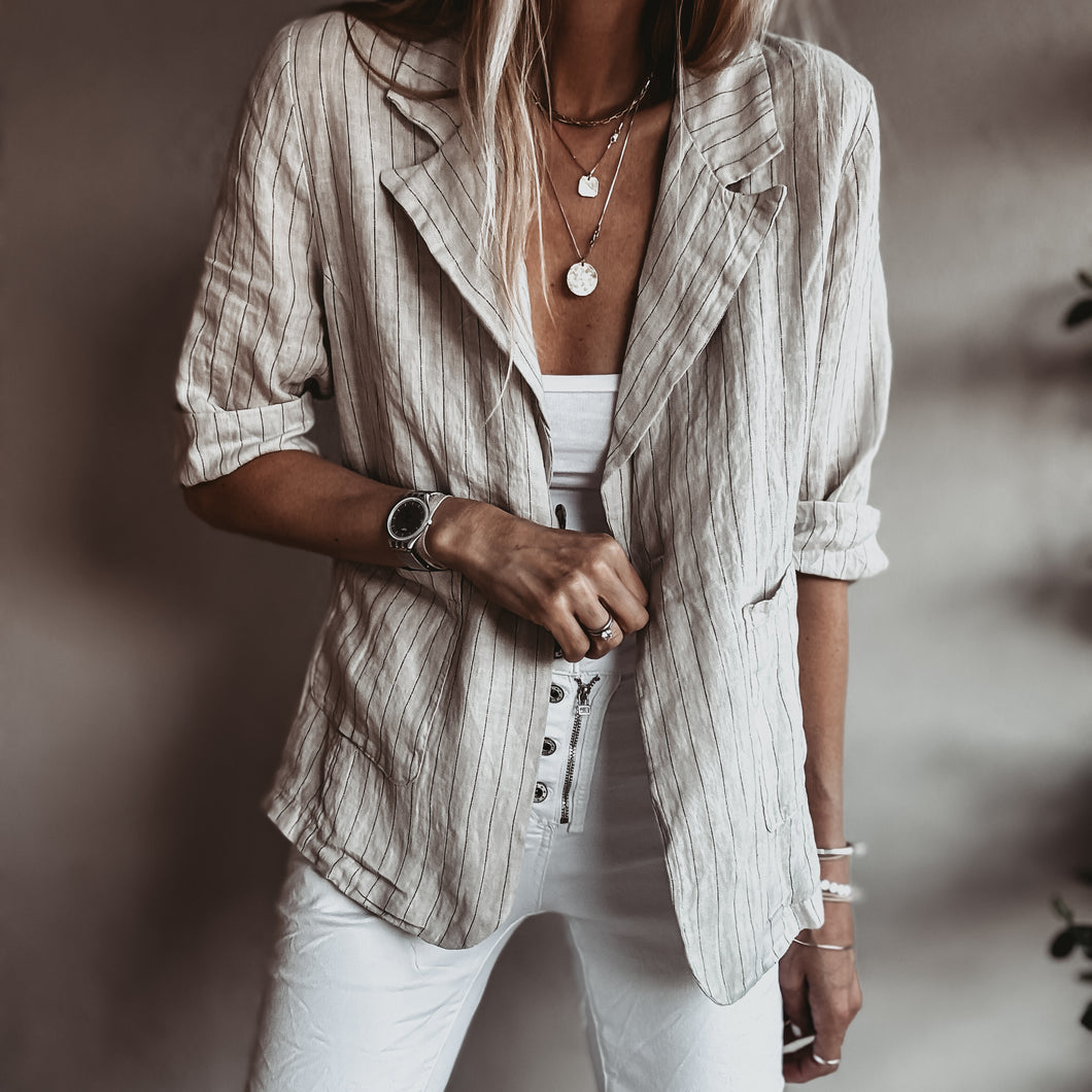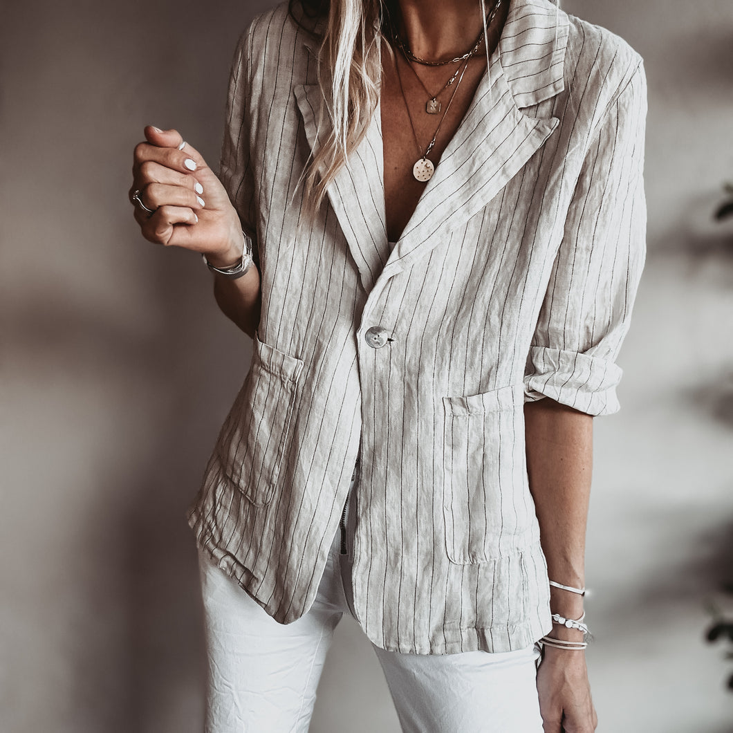Pinstripe SAND linen blouse blazer *NEW*