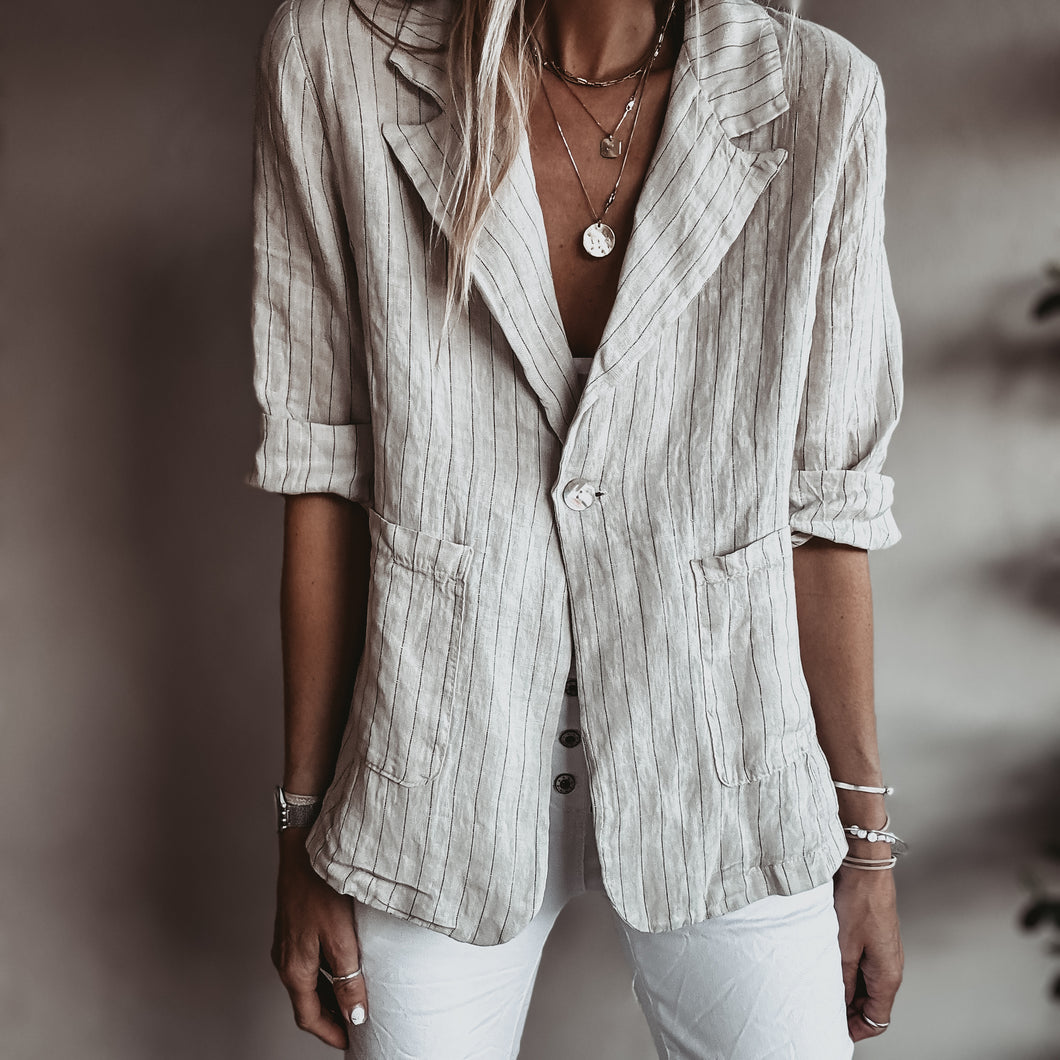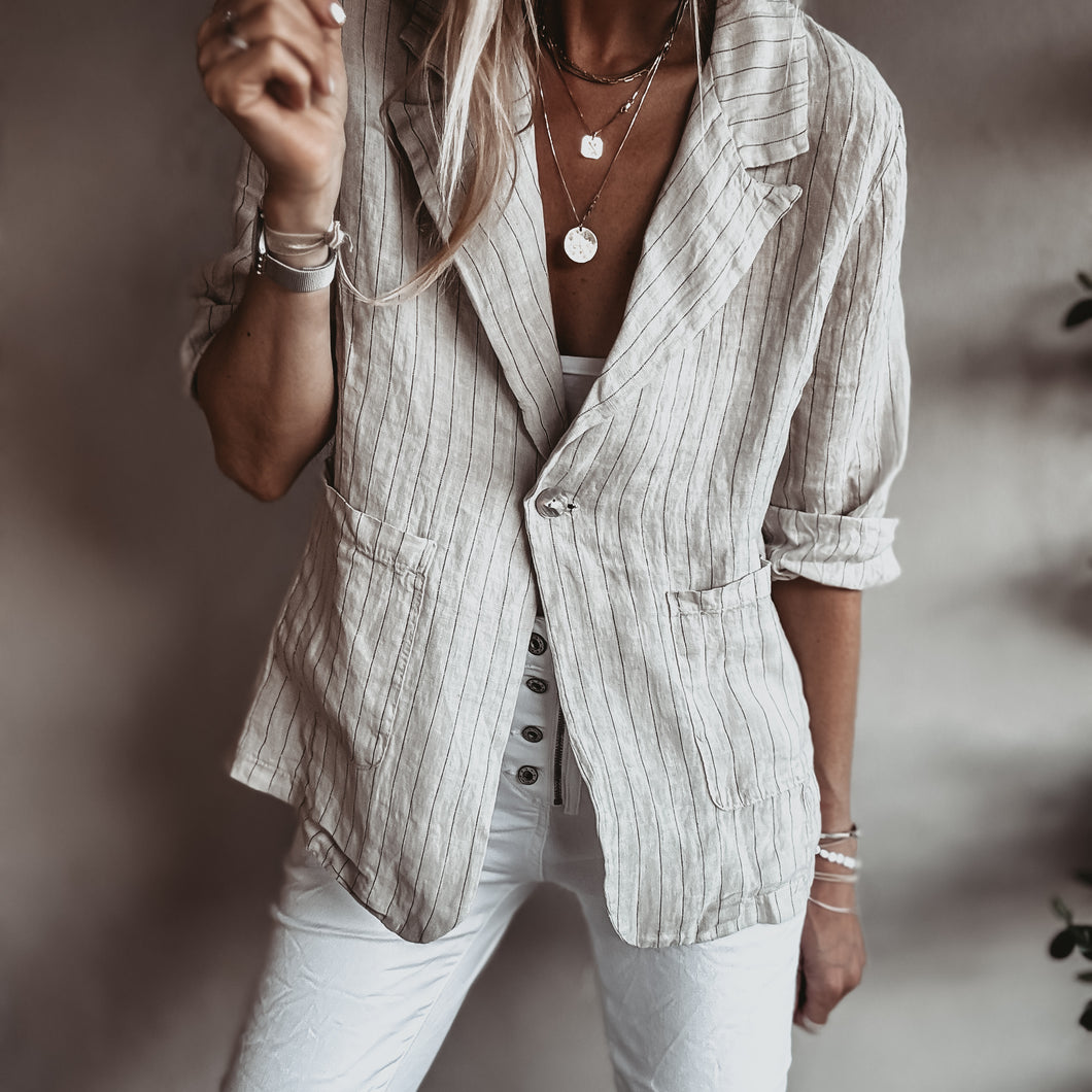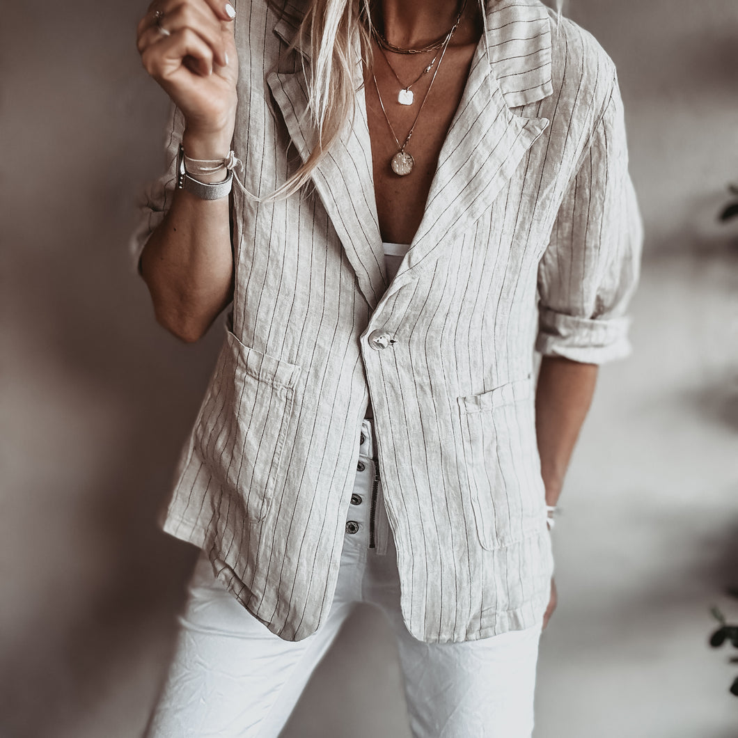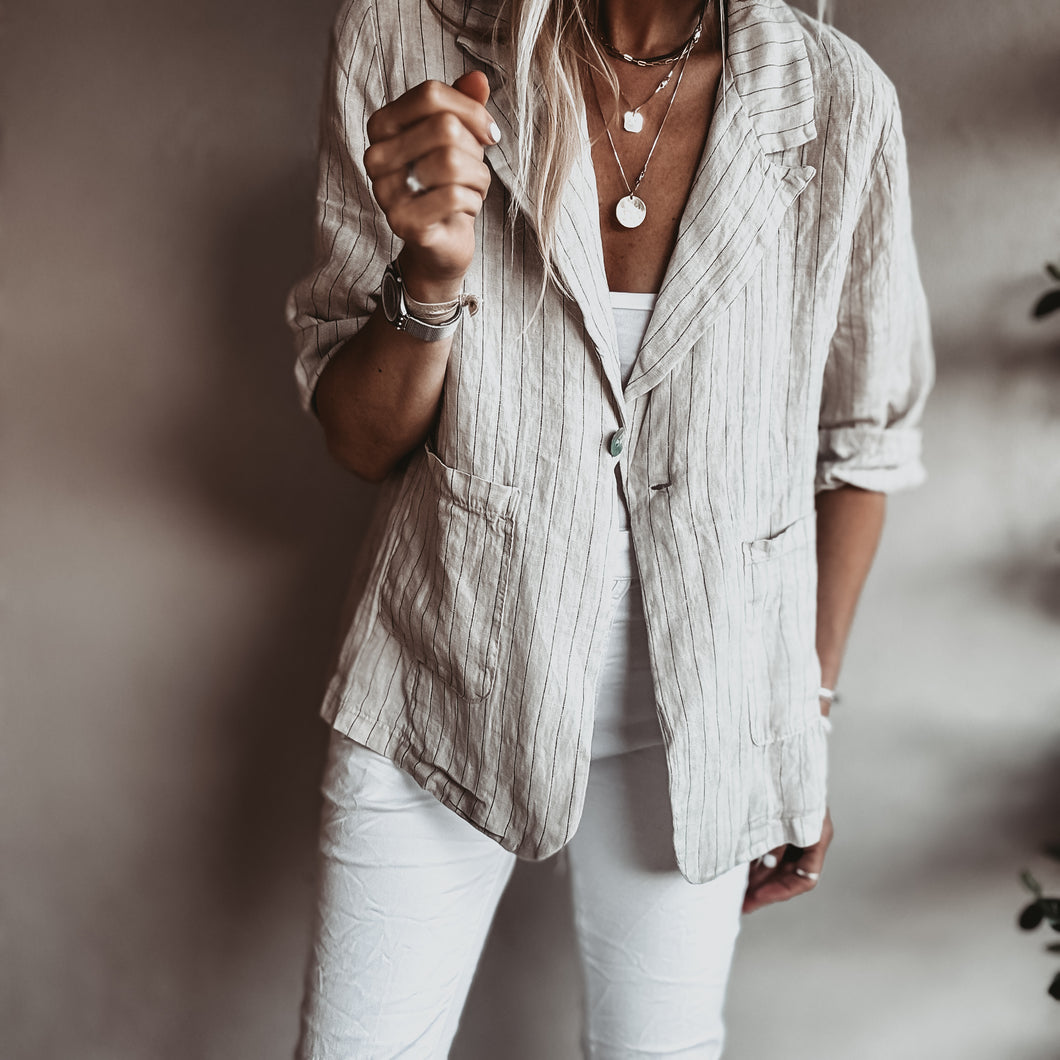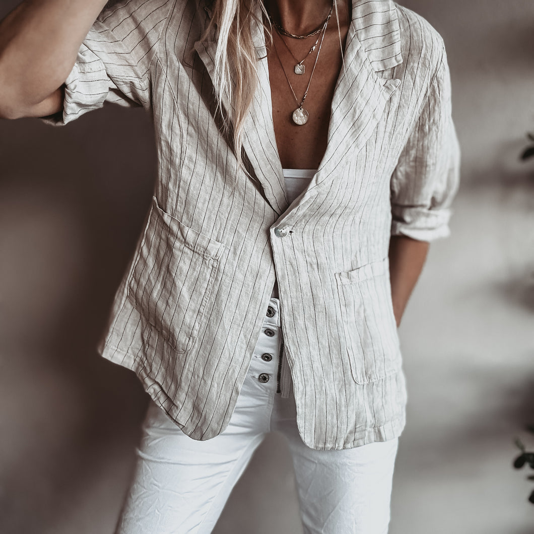 Pinstripe SAND linen blouse blazer *NEW*