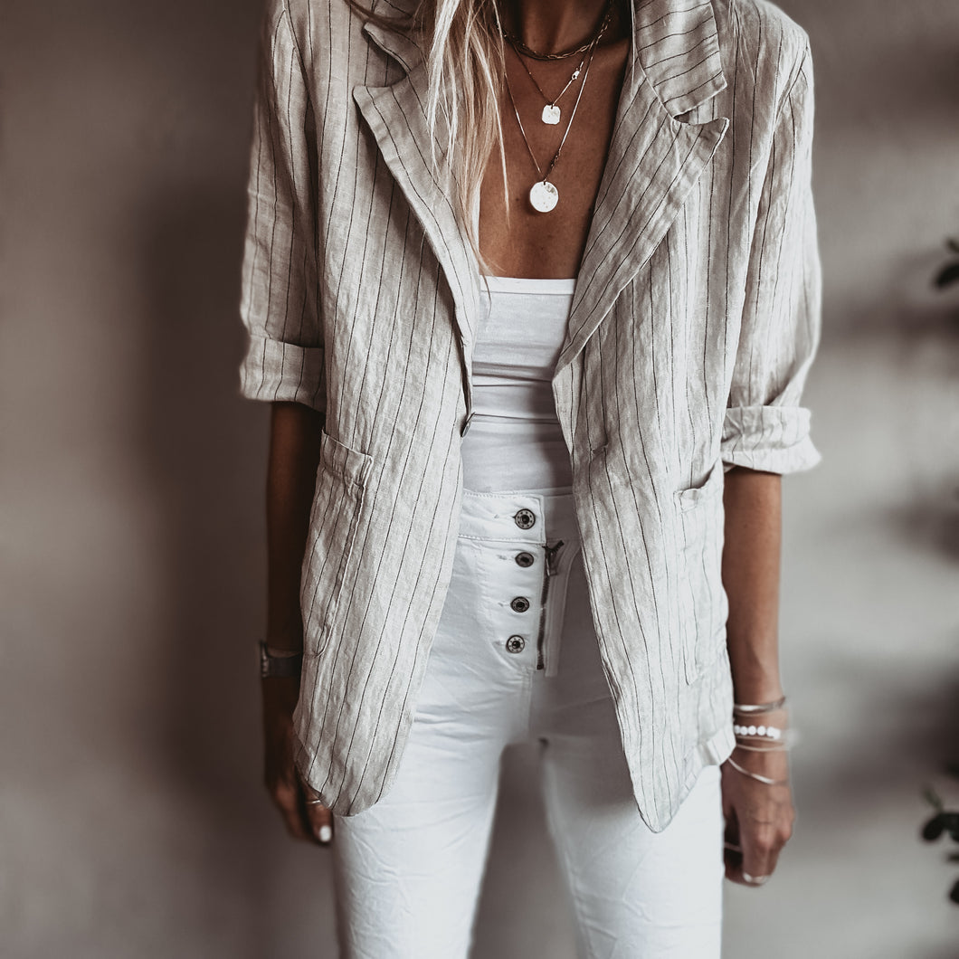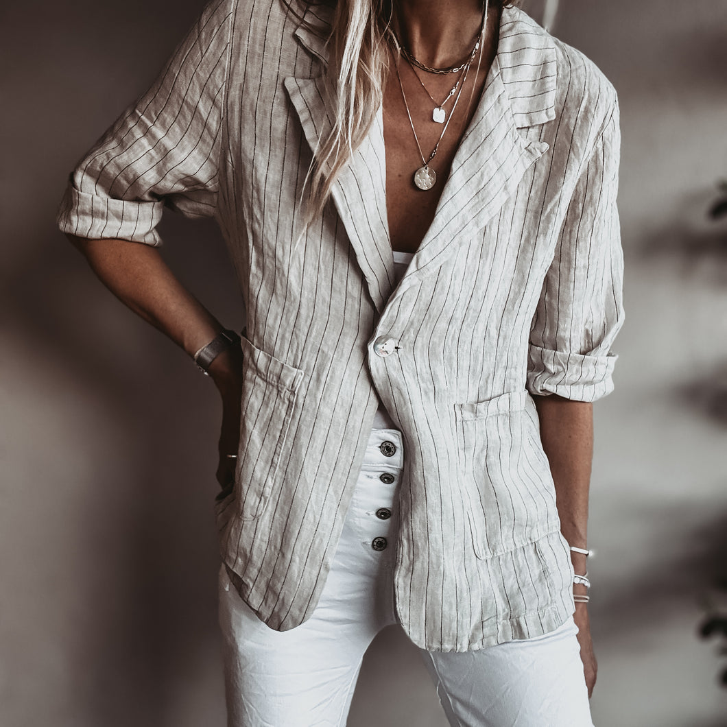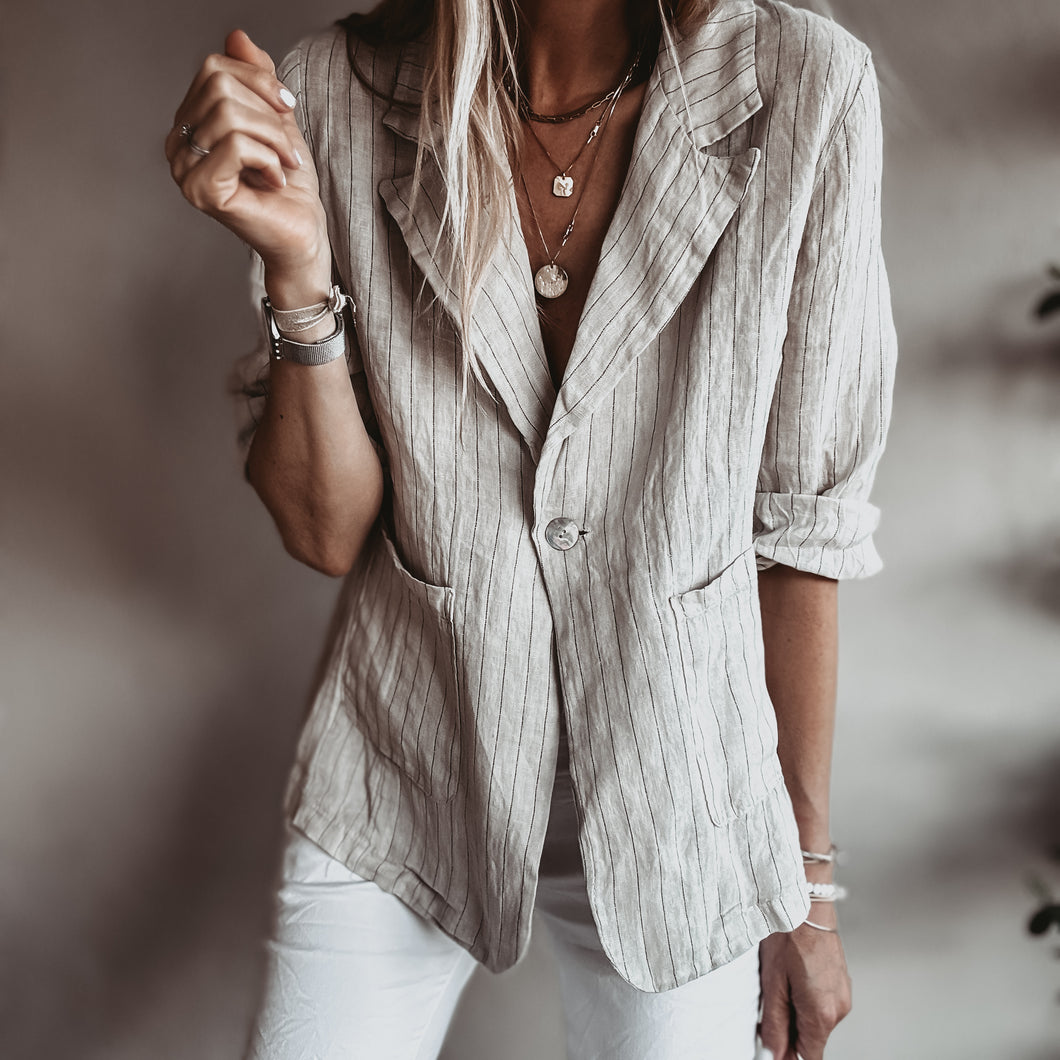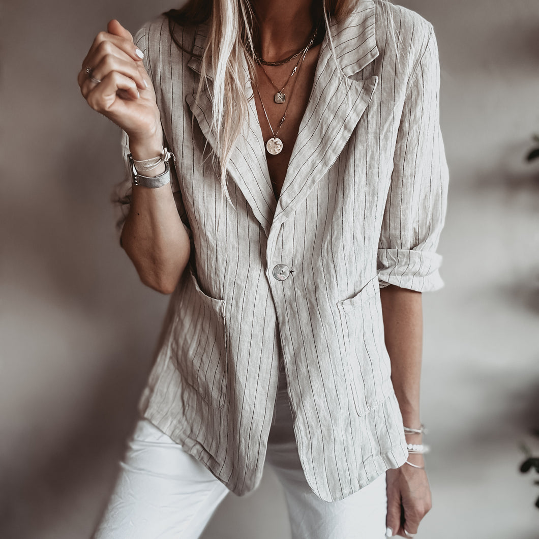 Pinstripe SAND linen blouse blazer *NEW*