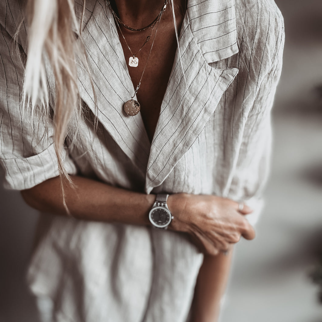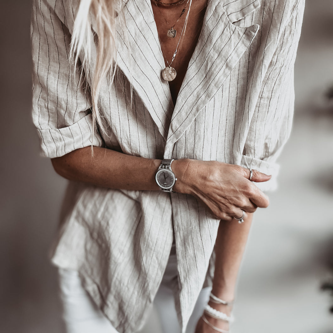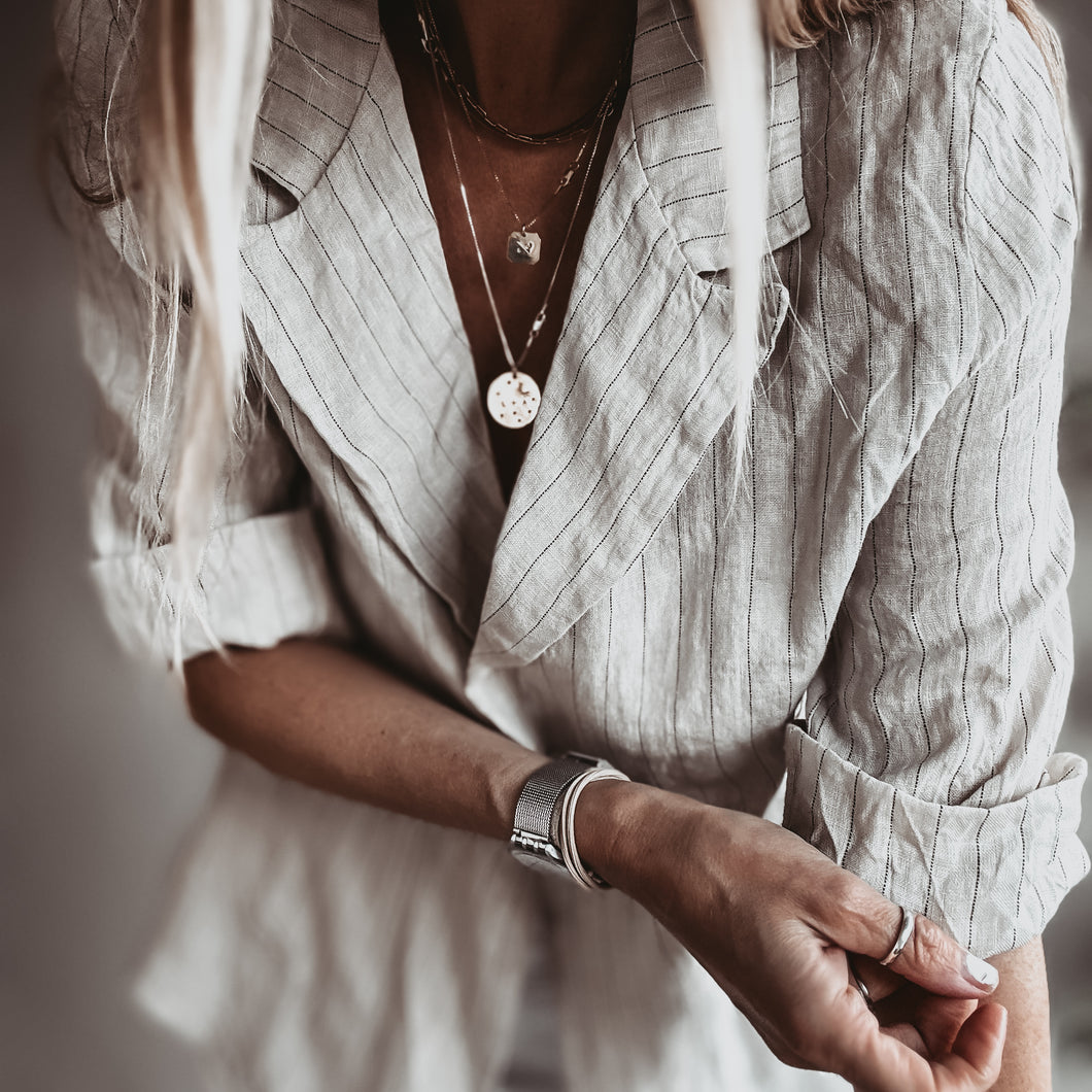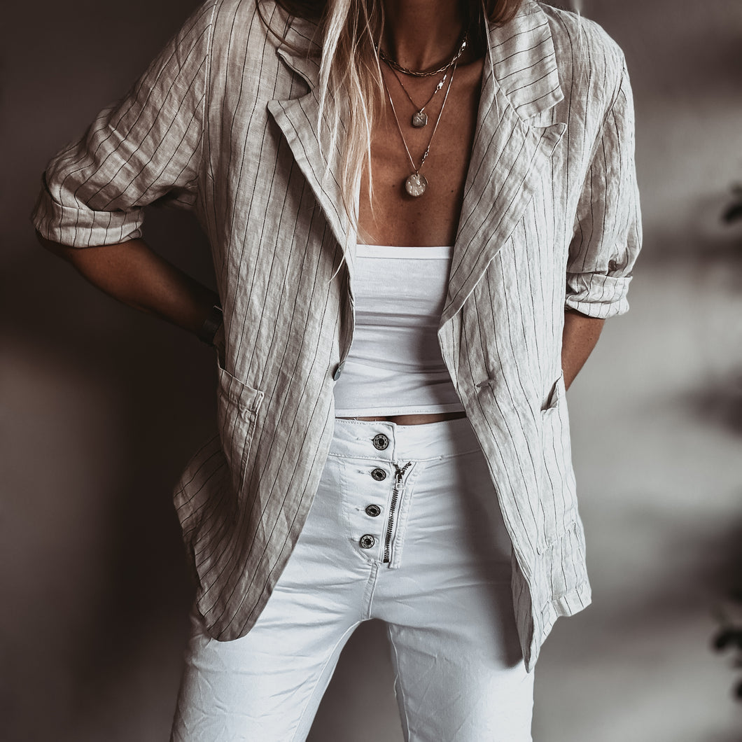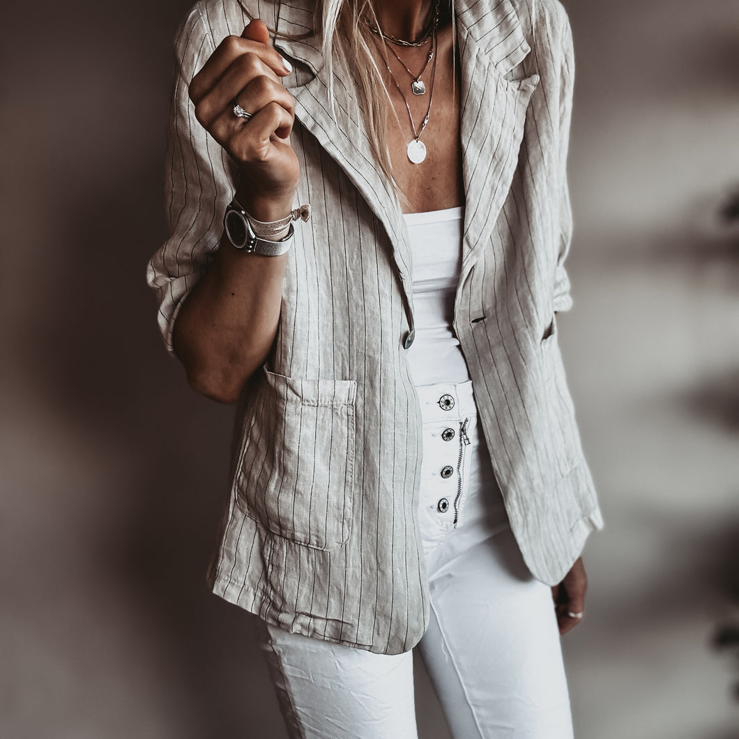 Pinstripe SAND linen blouse blazer *NEW*